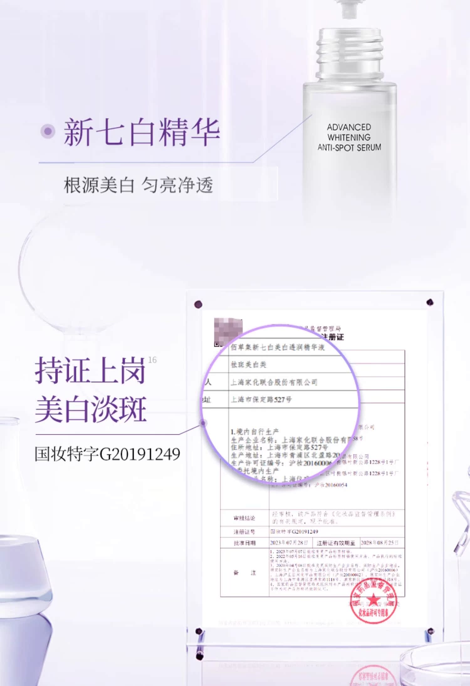 佰草集新七白燈管美白女官方精華液