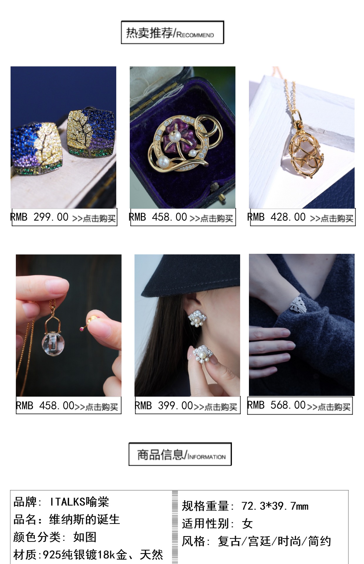 97¥ CZ0001 9EZ7dBHKKzJ¥ https://m.tb.cn/h.5VUJ8M7 喻棠Italks|維納斯的誕生|925純銀鍍金復古天然淡水巴洛克珠胸針 --------------------- 喻棠Italks|維納斯的誕生|925純銀鍍金復古天然淡水巴洛克珠胸針 --------------------- 【原售價】599元 【優惠券】20元 【券后價】579元。