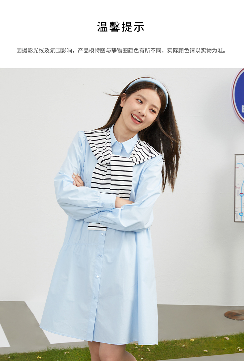 熱風2023年春季新款女士披肩式小A連衣裙顯瘦純棉甜美中長裙