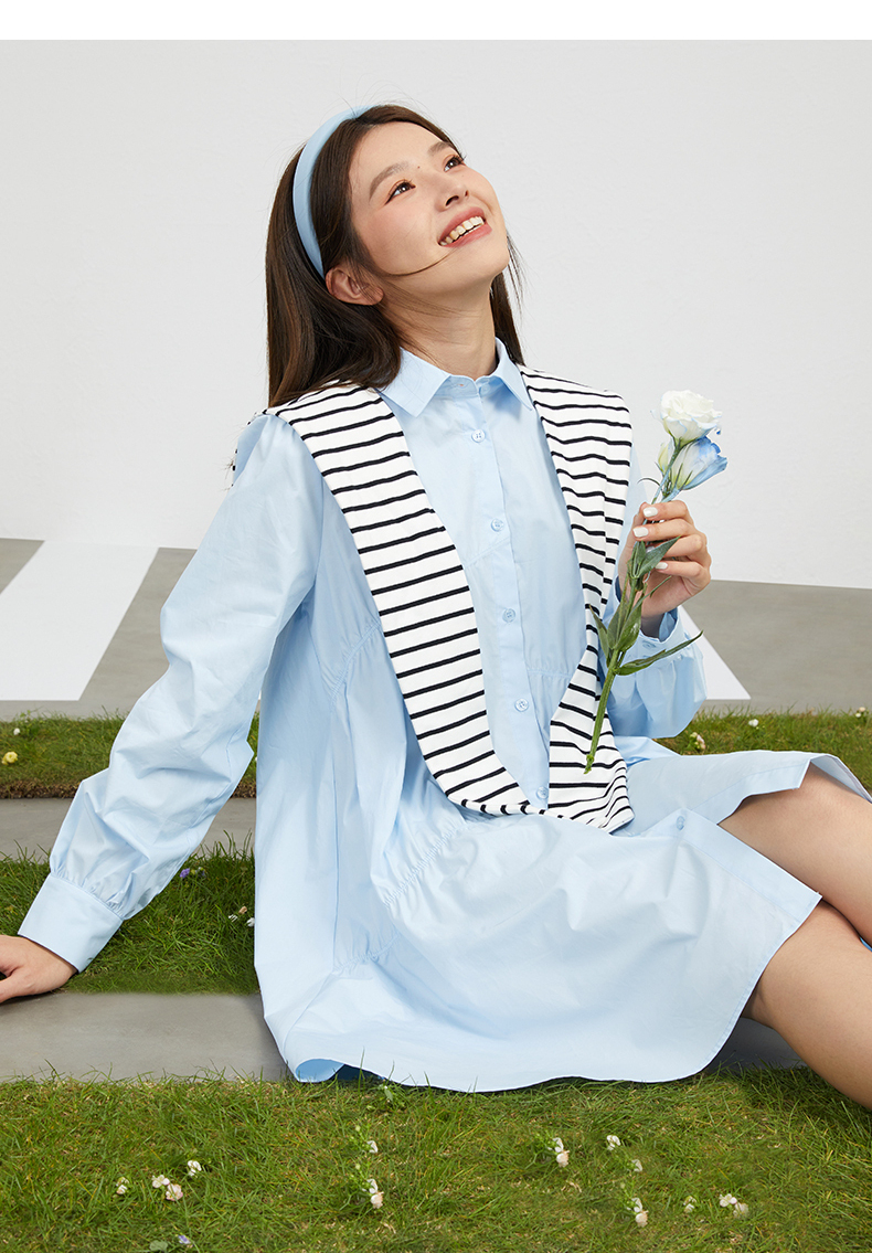 熱風女裝23秋新款女士溫柔拼色假兩件連衣裙小香風氣質連衣裙女