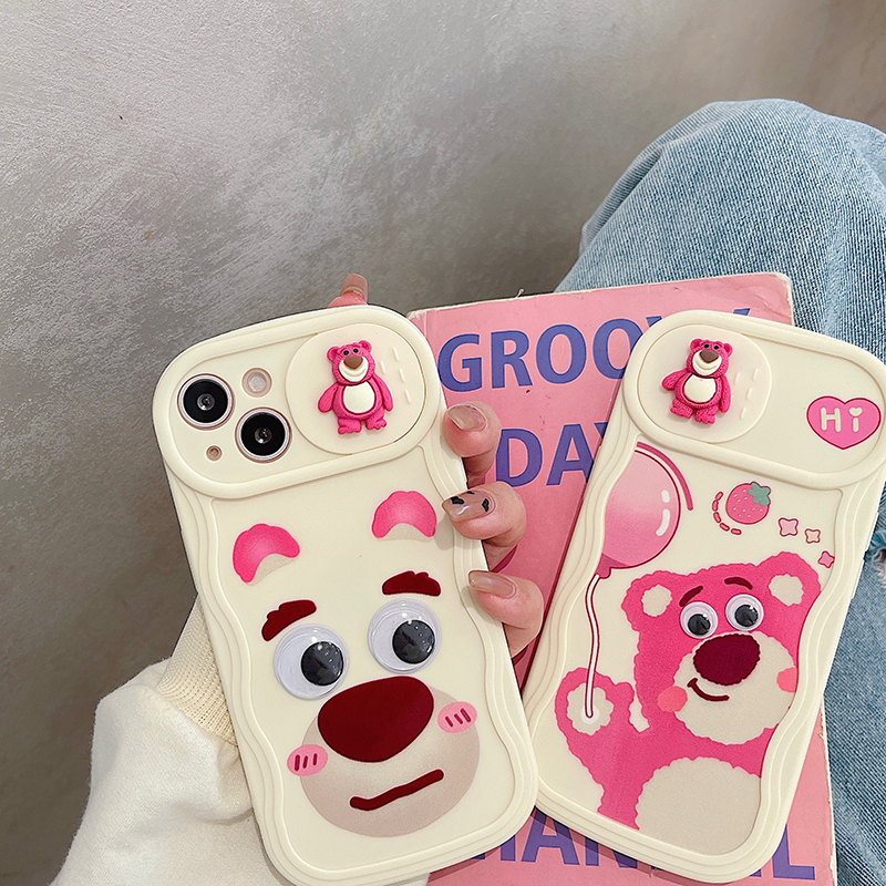 推拉窗立體草莓熊適用蘋果iphone14promax手機殼13pro新款網紅12可愛11小眾高級感max十四plus全包鏡頭保護套