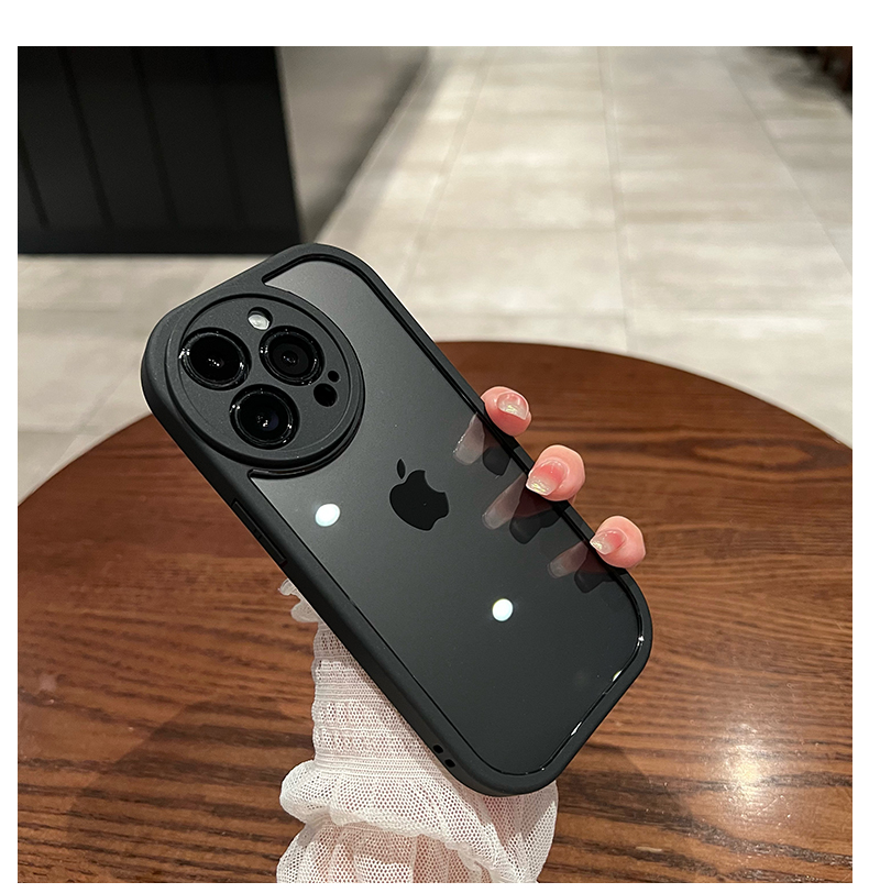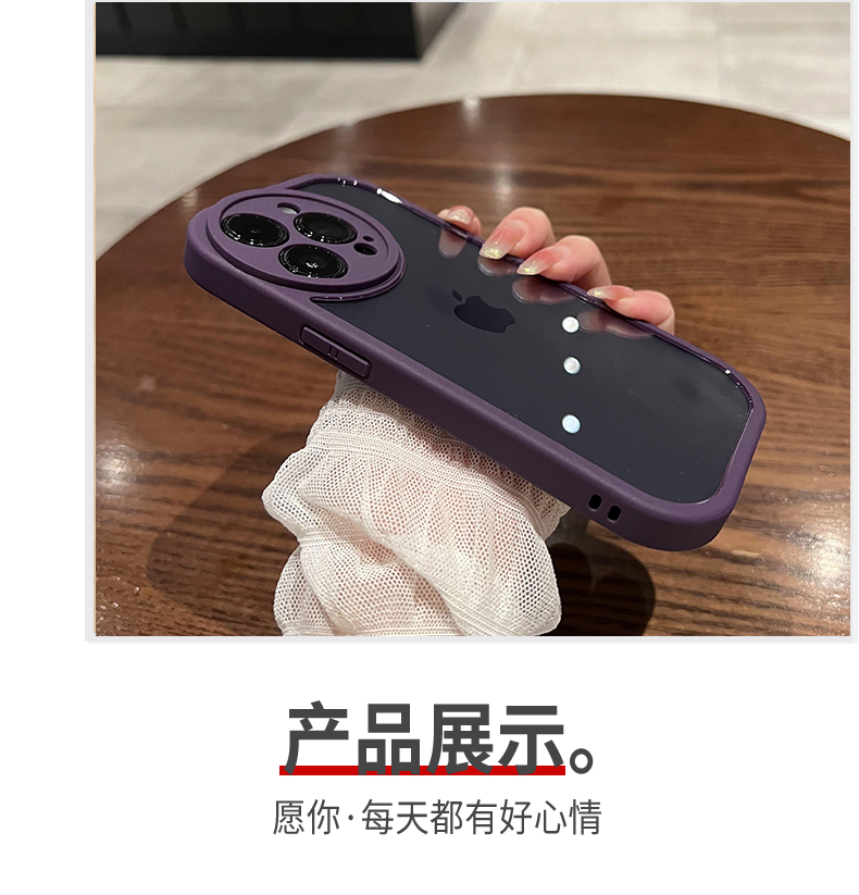 umj 暗紫色圓鏡頭軟邊硬殼適用iphone14pro新款透明14plus蘋果13proMax手機殼12簡約風全包防摔pro保護套男女