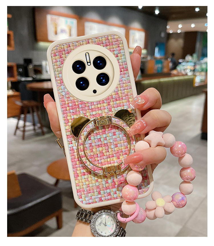 小香風編織暴力熊米奇支架適用華為mate50Pro手機殼mete40新款防摔mt30硅膠保護套m20鏡頭全包Por女款簡約潮