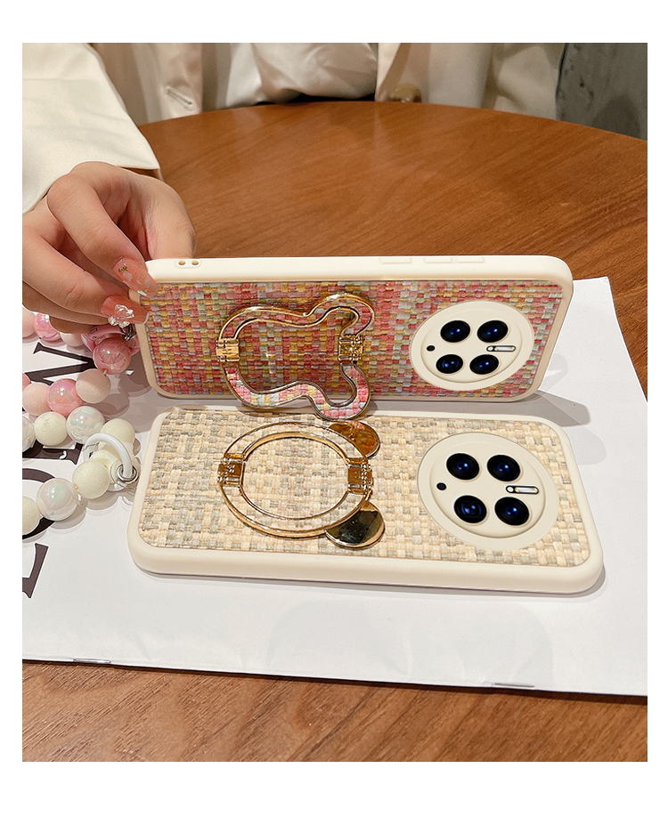 編織紋亮面皮質適用華為mate60手機殼mate50Pro保護套支架mete40軟殼全包防摔mt30女款簡約m20高級感小眾50e