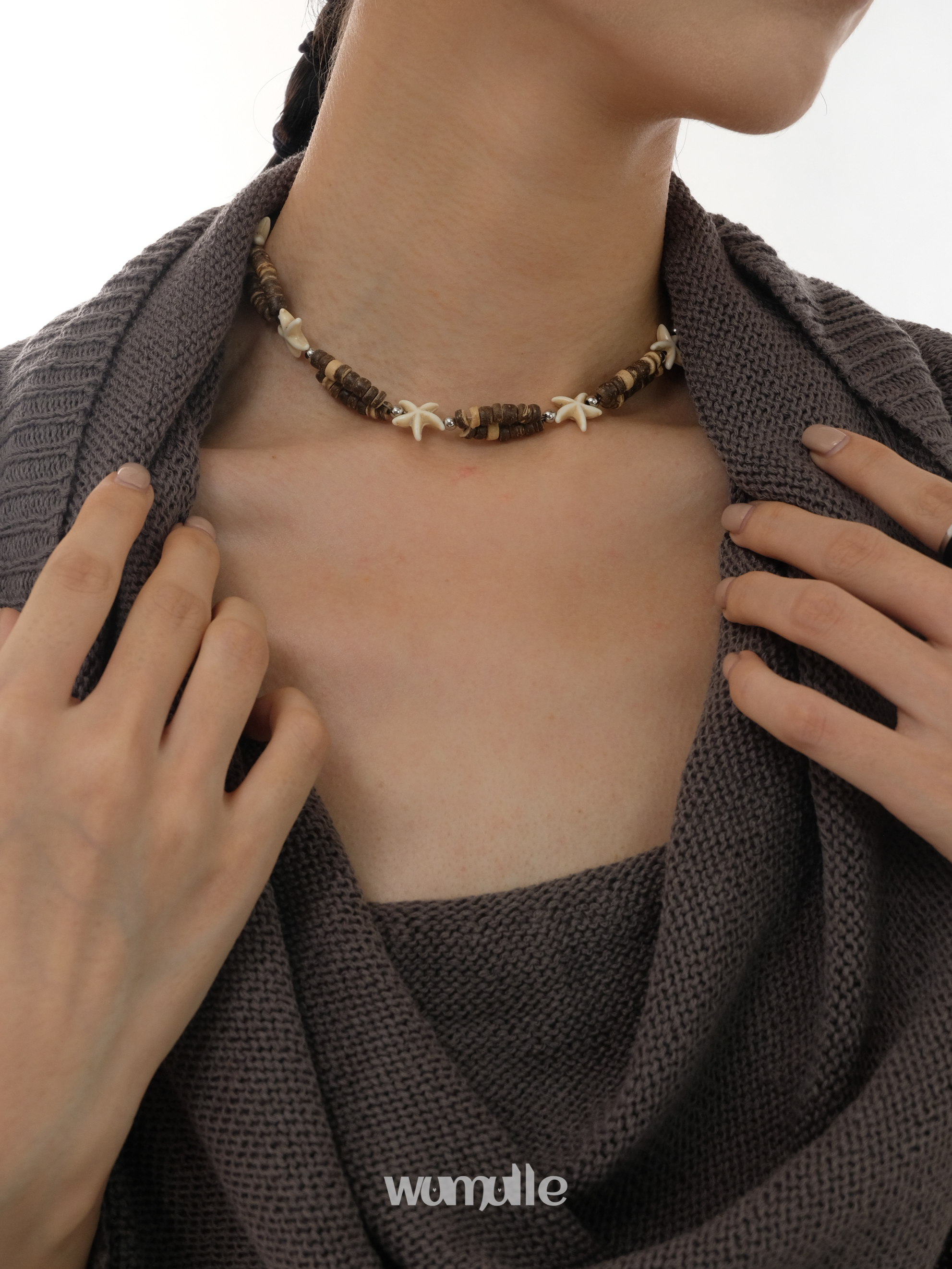 wumulle 廢墟創新風海星椰項鏈y2k千禧亞文化情侶 木質鏈自制原創