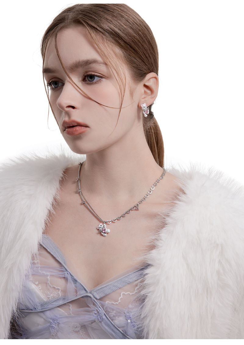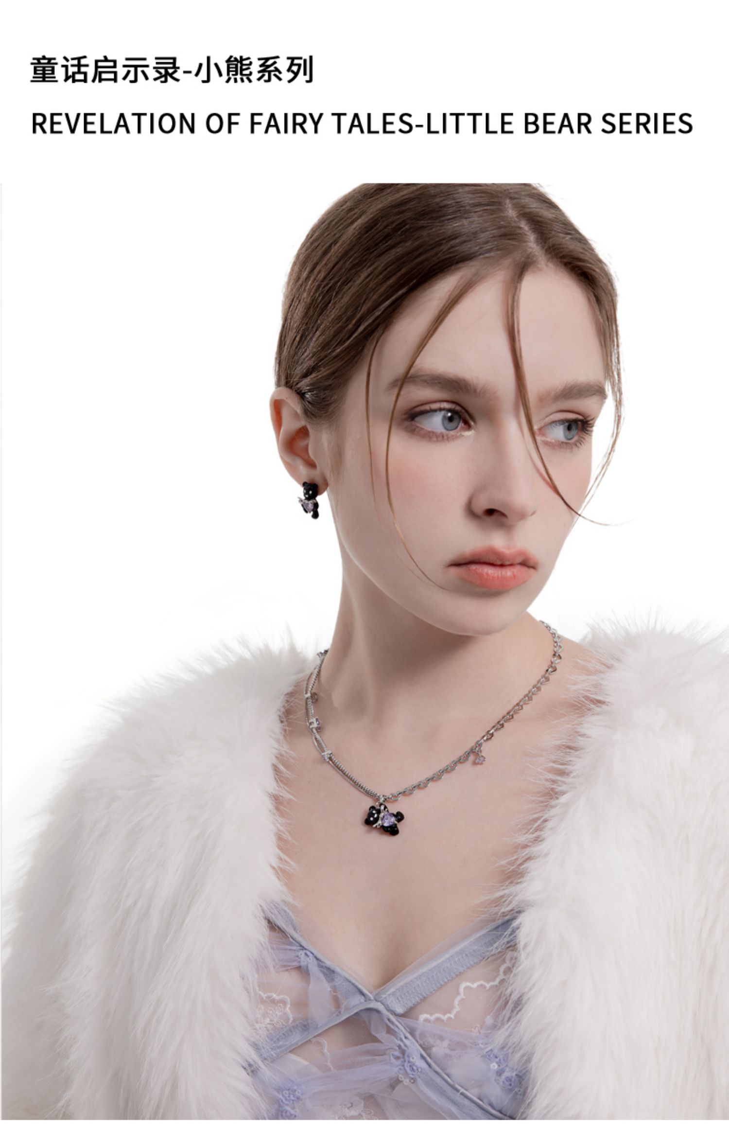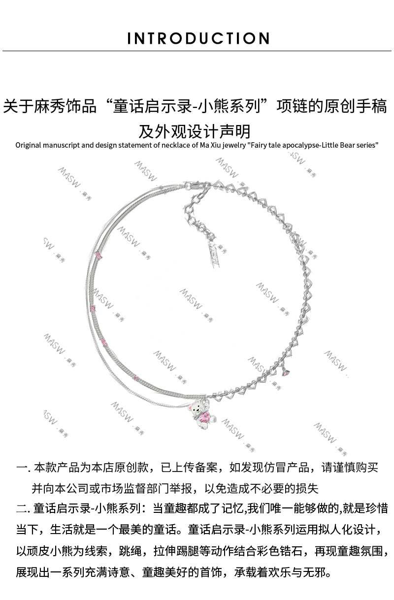 MASW麻秀原創設計可愛小熊吊墜項鏈甜美通勤氣質輕奢毛衣鏈M1346
