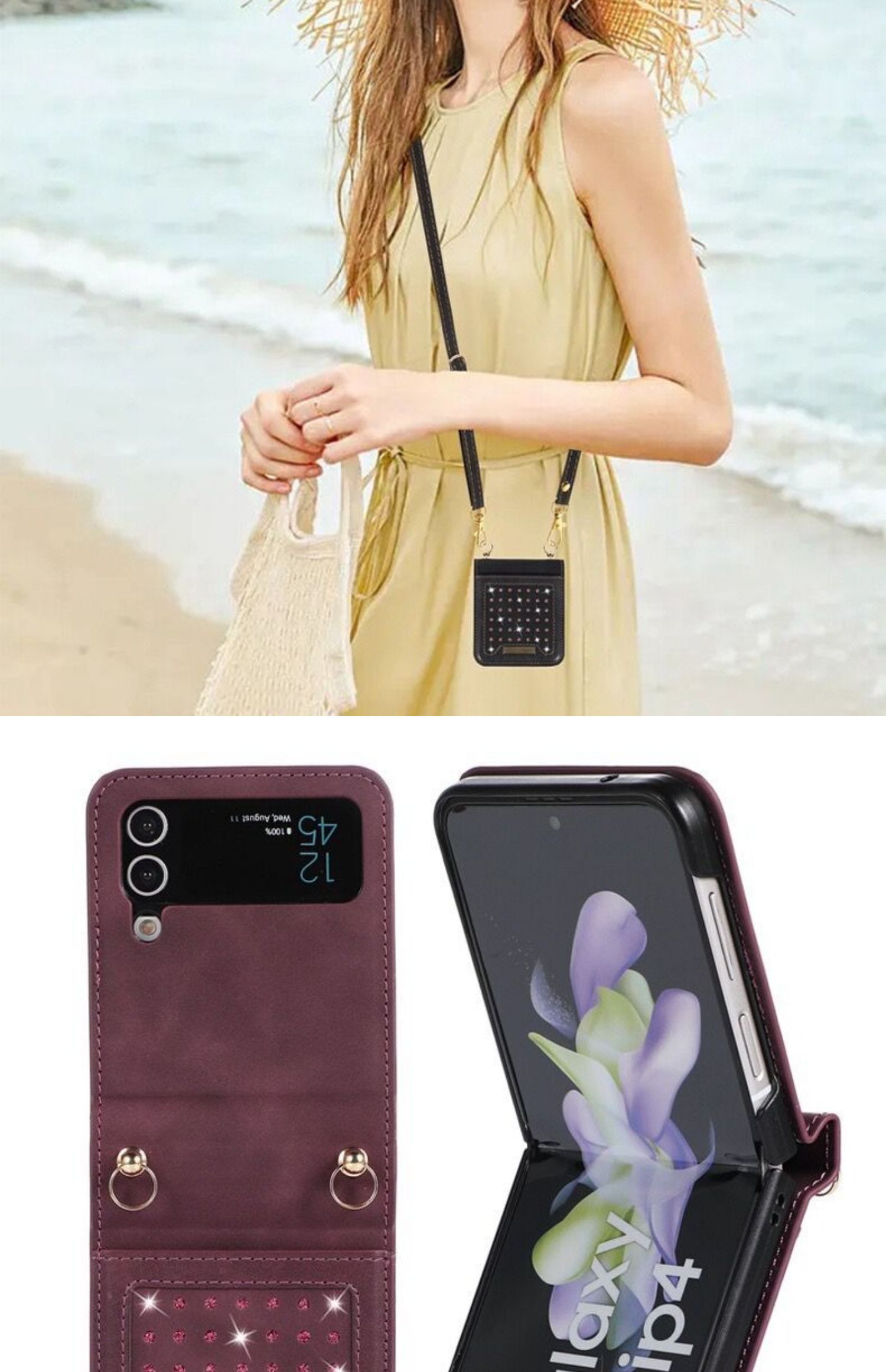 多卡槽錢包卡套適用三星Filp4手機殼Z flip5時尚Galaxy flip3可插卡Flip3支架卡包零錢包帶掛繩斜挎可背新款