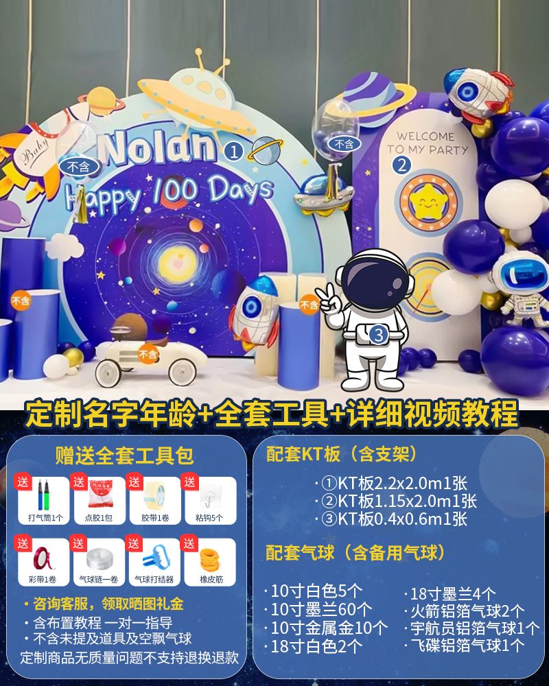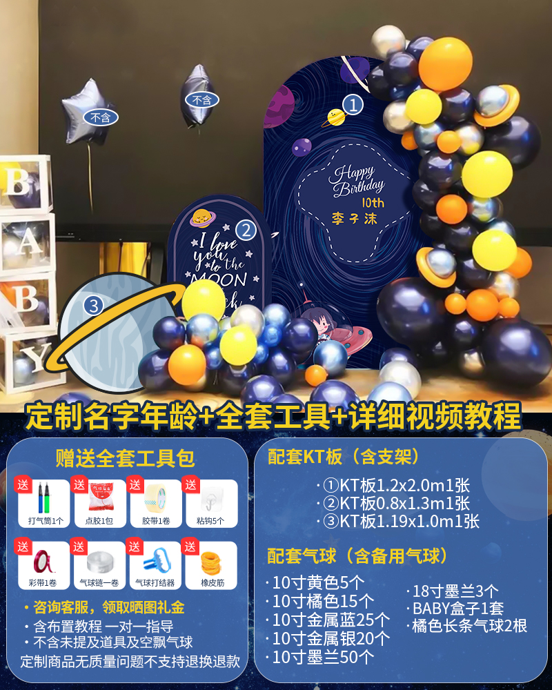 太空人主題派對男孩10周歲生日大型KT背景墻氣球裝飾場景布置套餐