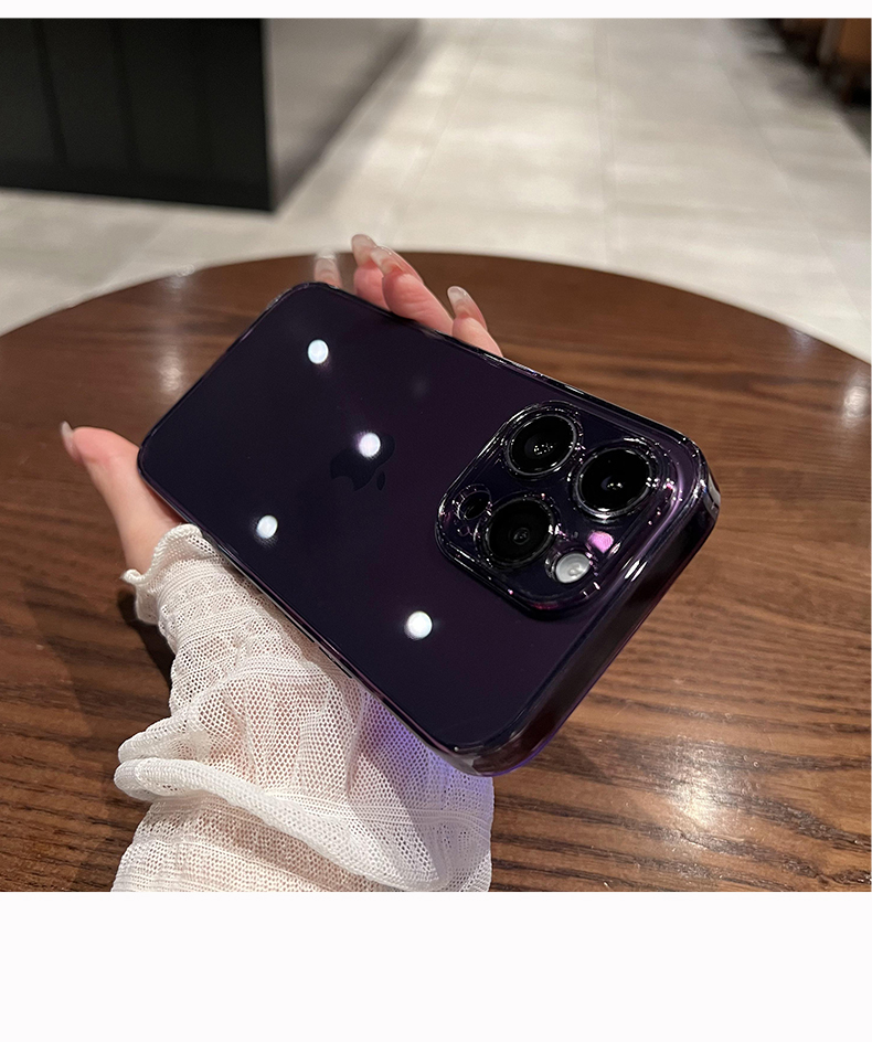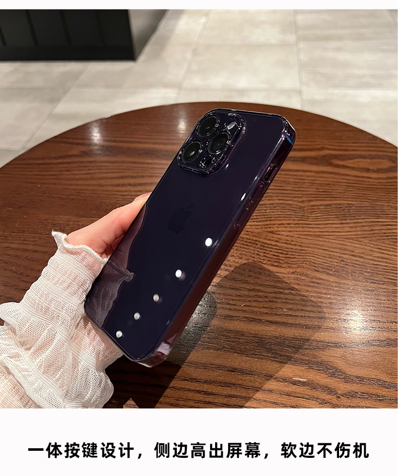 軒晴透明暗紫色金屬鏡頭簡約手機殼