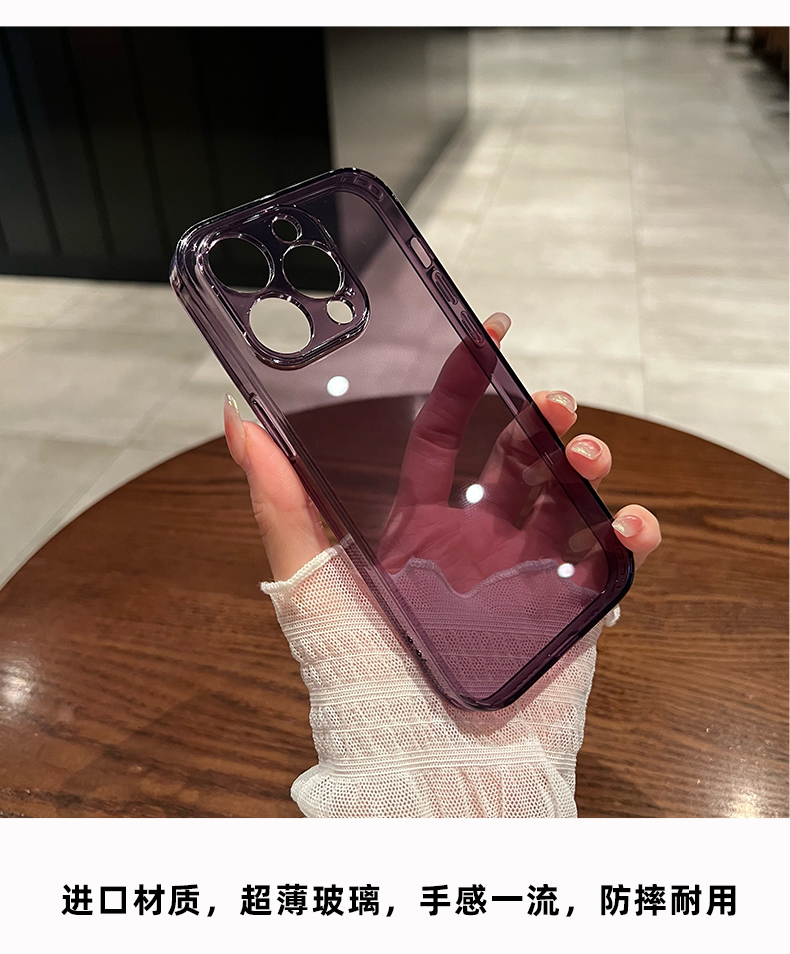 軒晴 暗紫色超薄玻璃適用iphone14Pro透明全包蘋果13ProMax手機殼12簡約風軟邊高品質防摔高級保護套男女新款