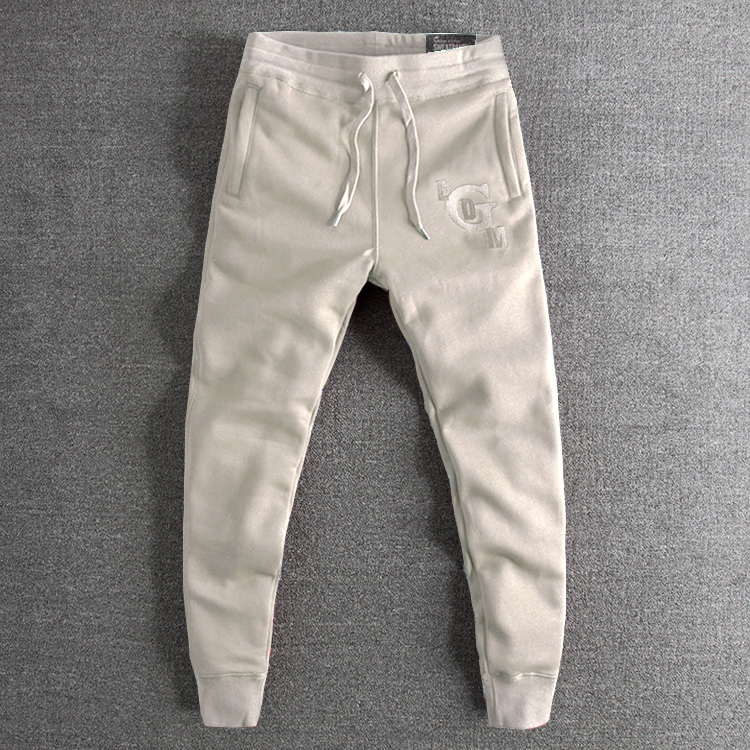 潮牌秋冬刺繡抓絨運動休閑褲男士加絨加厚衛褲保暖束腳褲小腳長褲