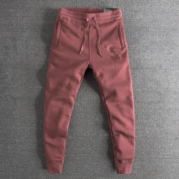 代購秋季重磅純棉毛圈休閑衛褲男修身純色抽繩運動束腳褲青年長褲