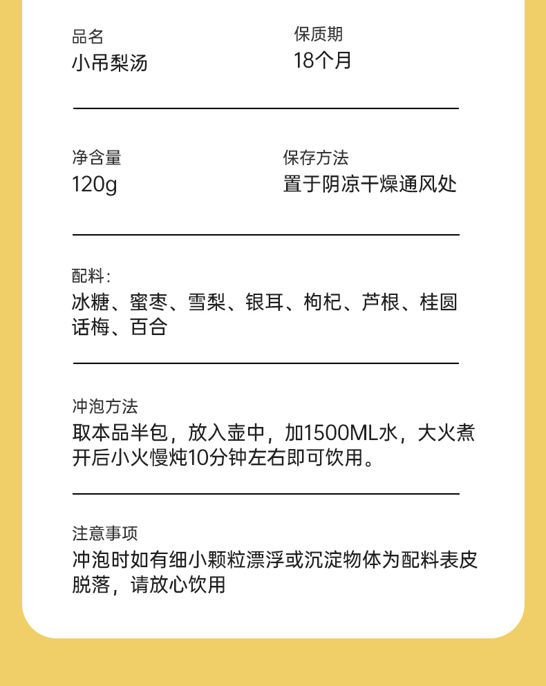 白云山盈康小吊梨湯老北京糖水潤燥百合銀耳雪梨湯紅棗枸杞花茶包