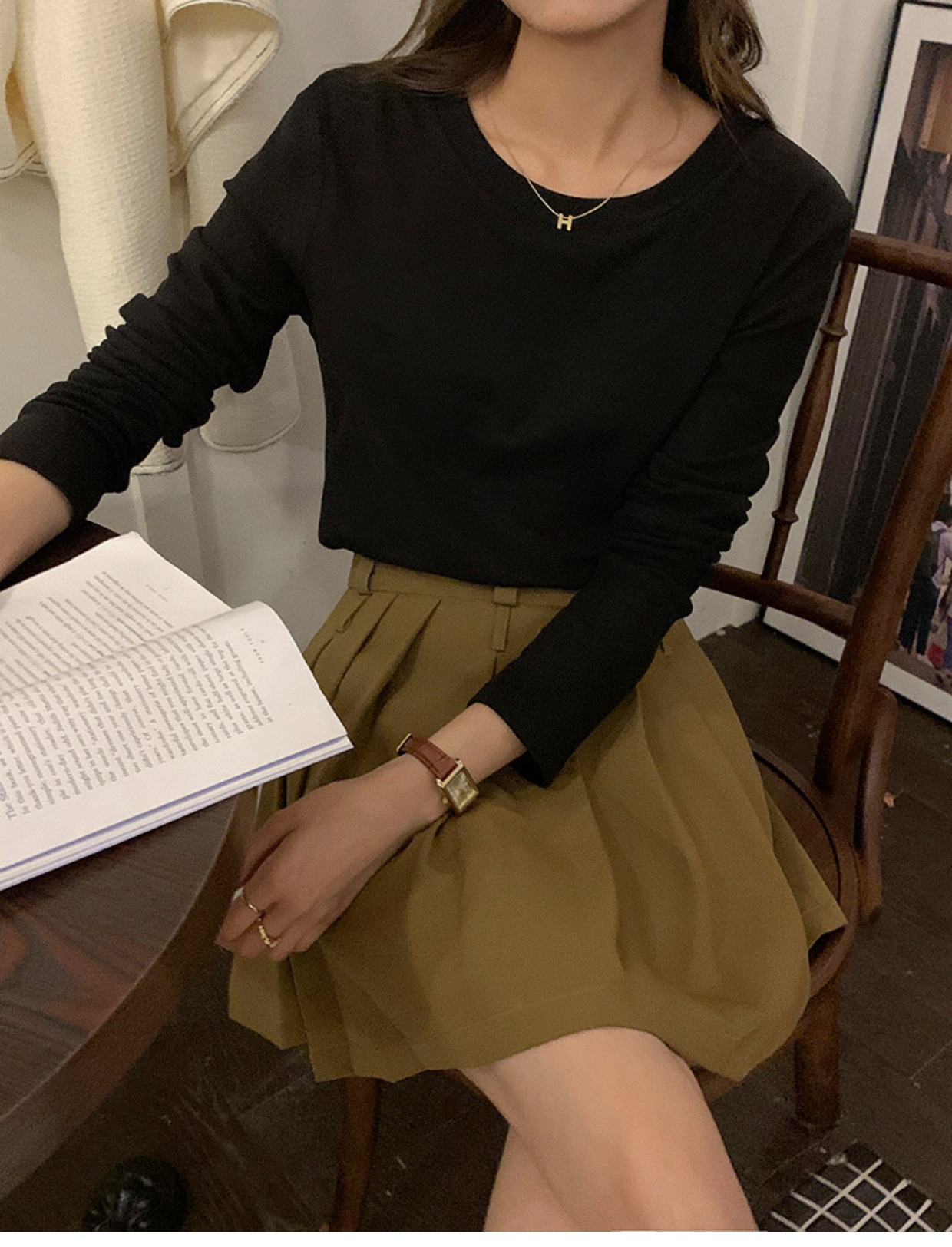 純色面膜長袖t恤女薄款寬松內搭春秋打底衫可外穿軟糯針織上衣冬