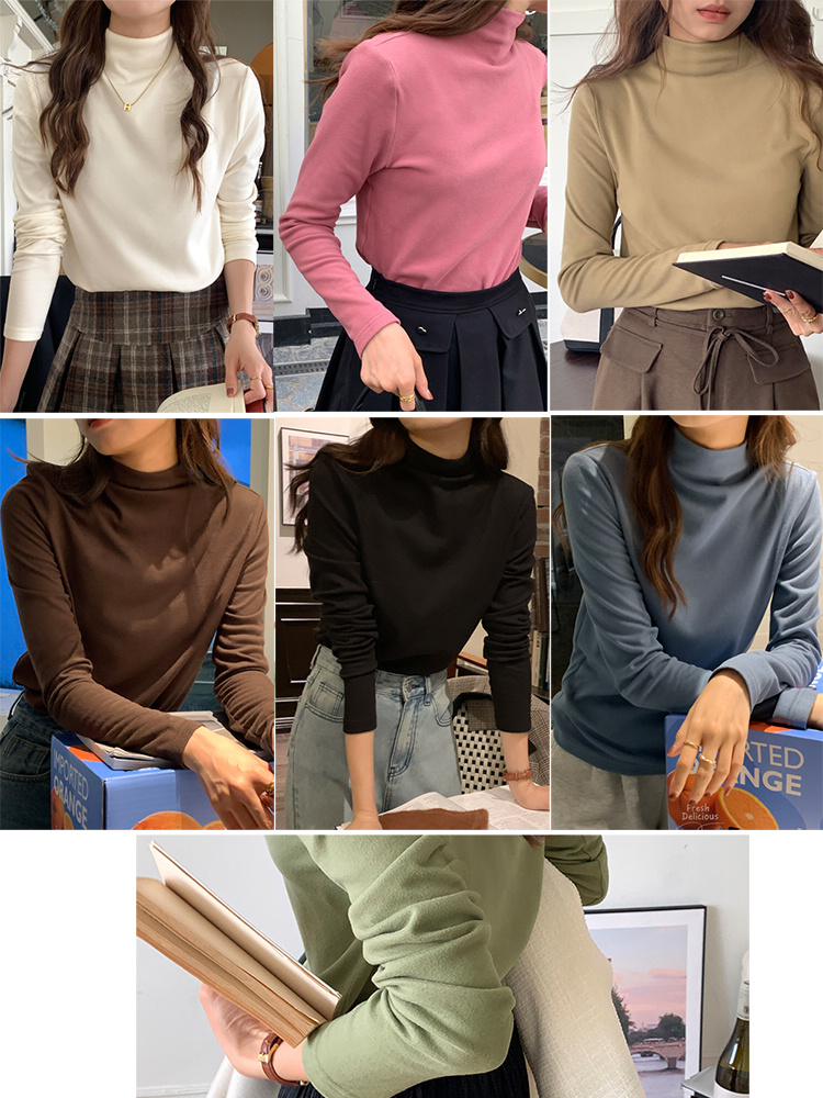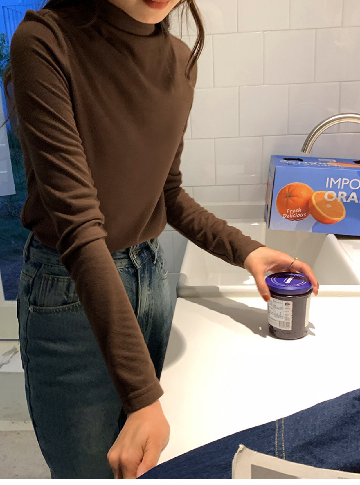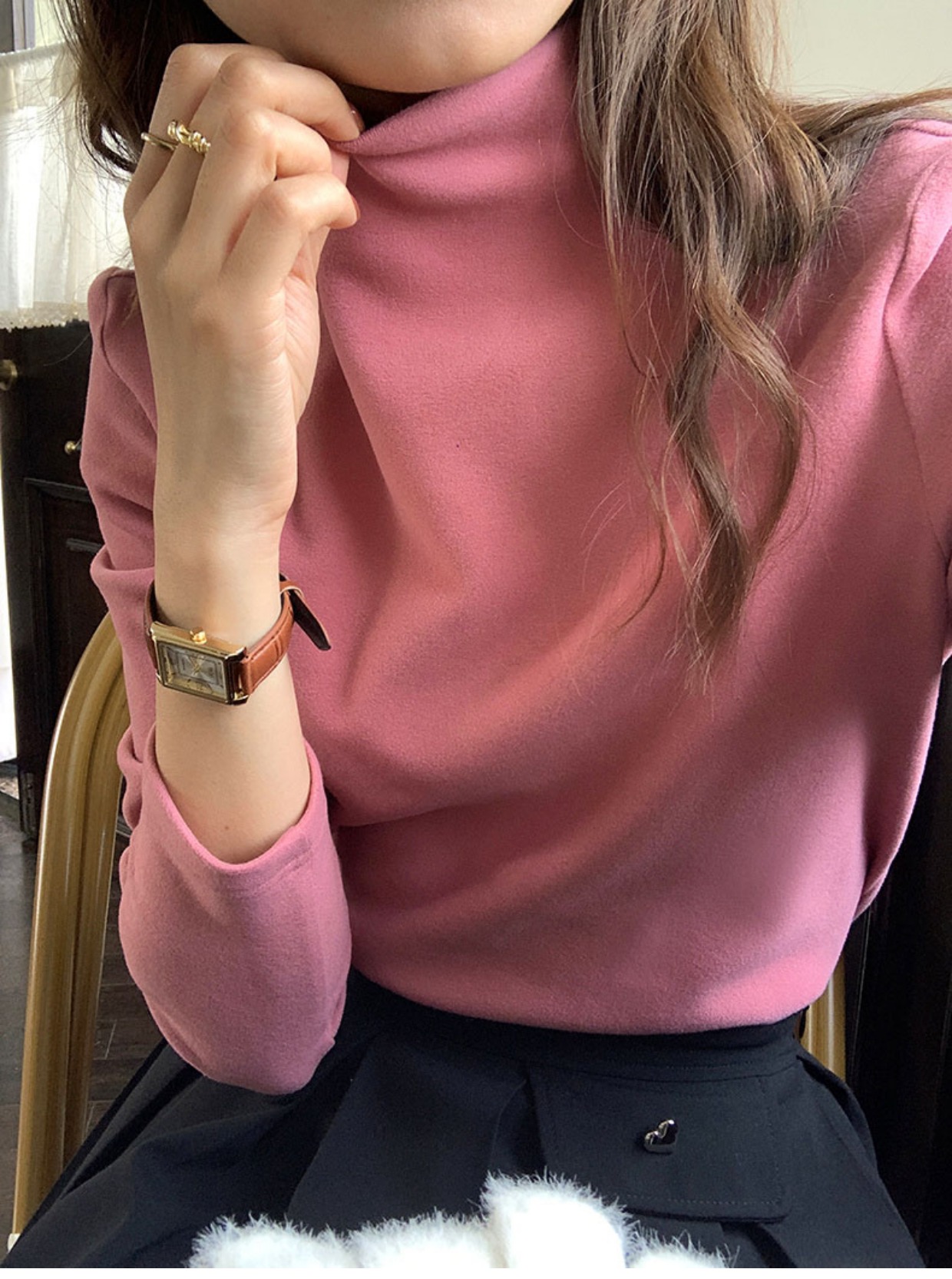 雙面德絨半高領打底衫女秋冬加厚中領長袖T恤保暖內搭自發熱上衣