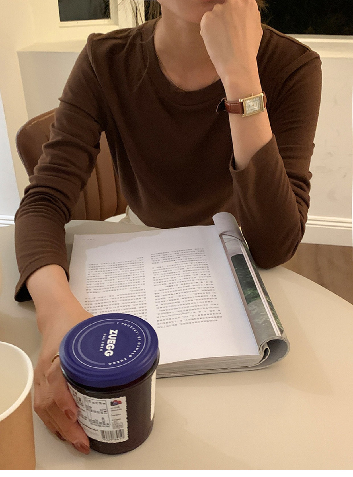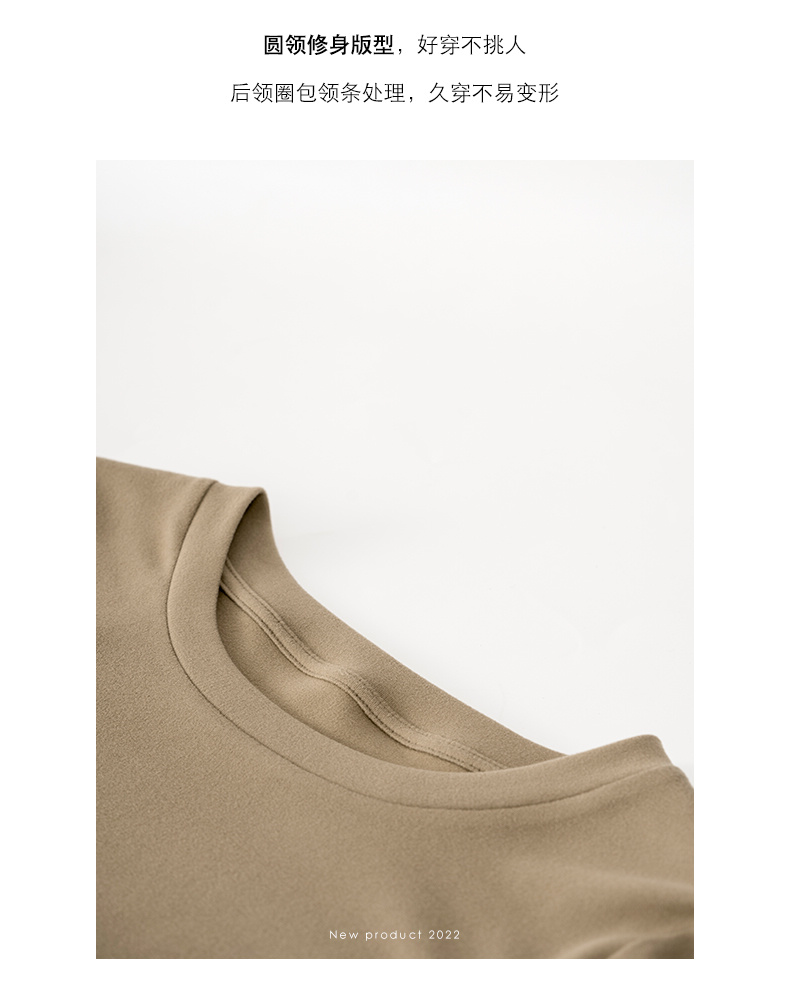「夏秋」純欲軟糯嬰兒絨細魚骨弧邊U領顯胸打底衫設計感長袖正肩