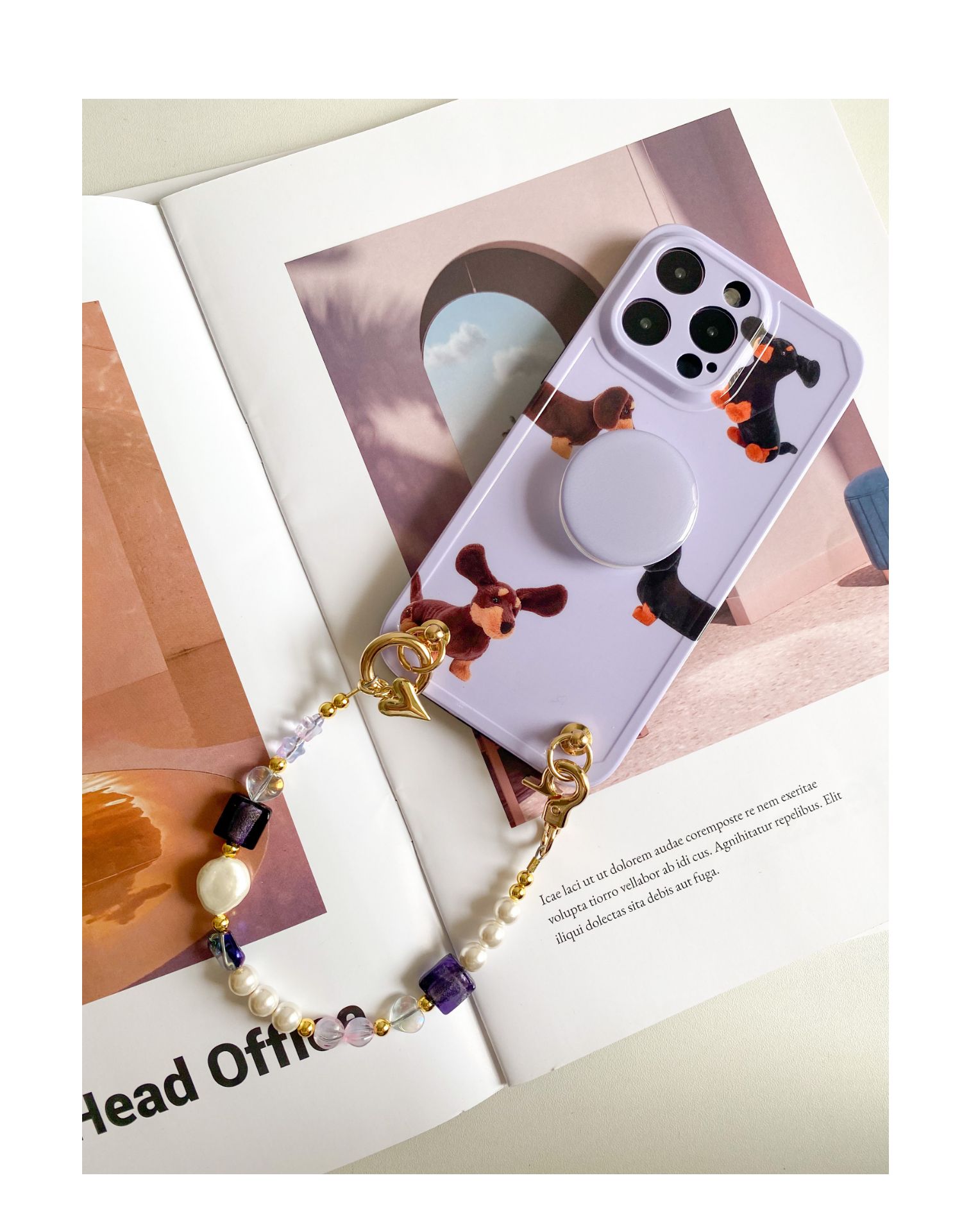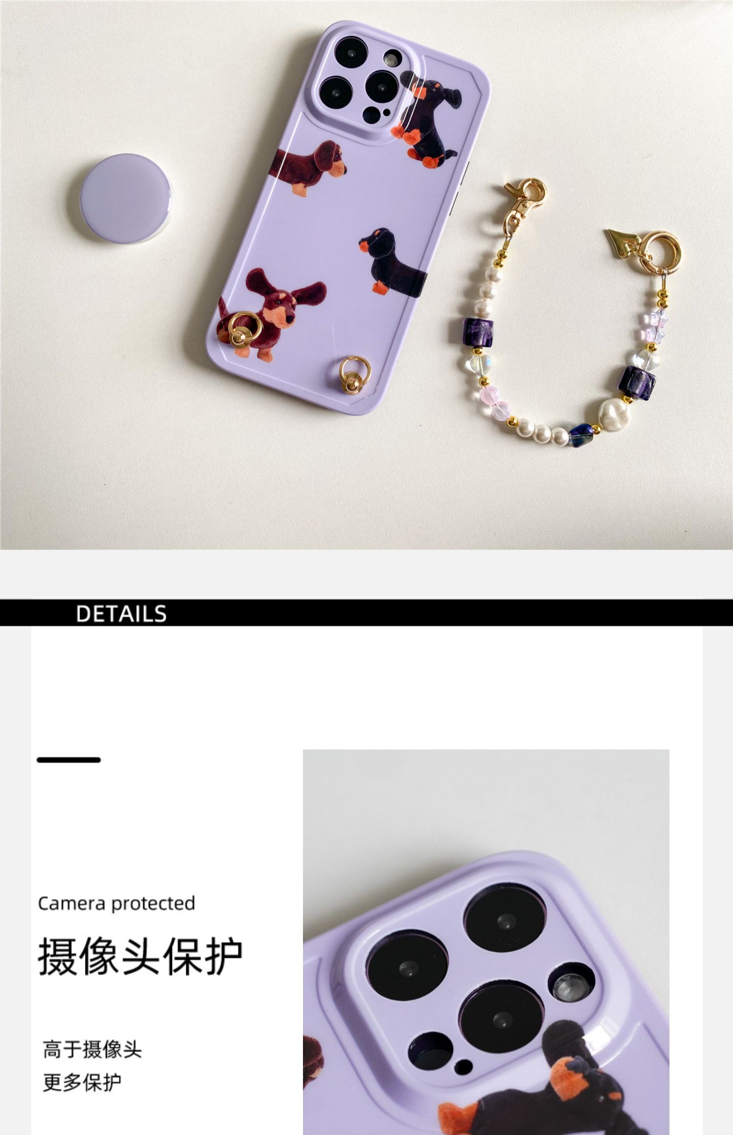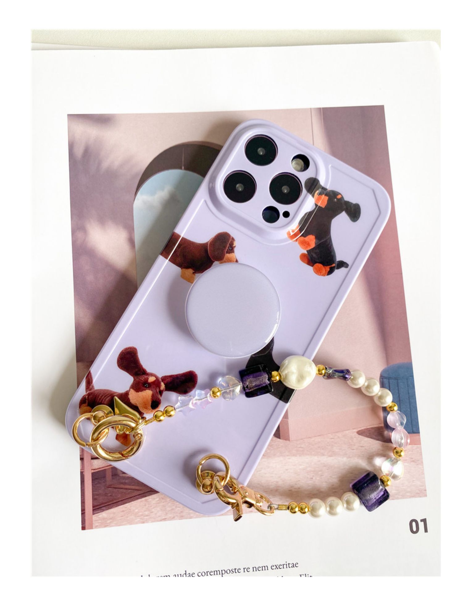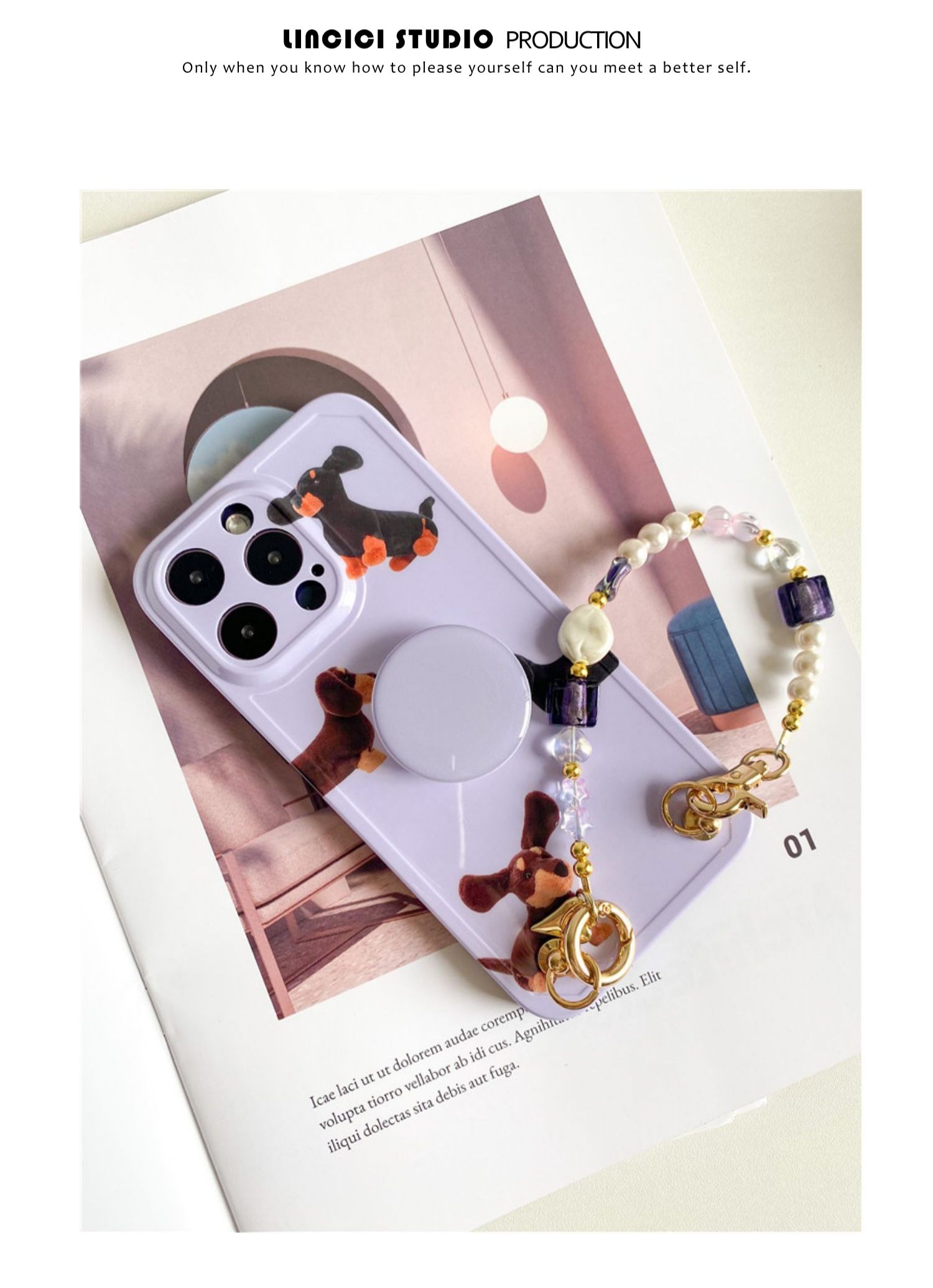 趙露思同款紫色狗支架手提鏈條適用蘋果iPhone14 13promax手機殼