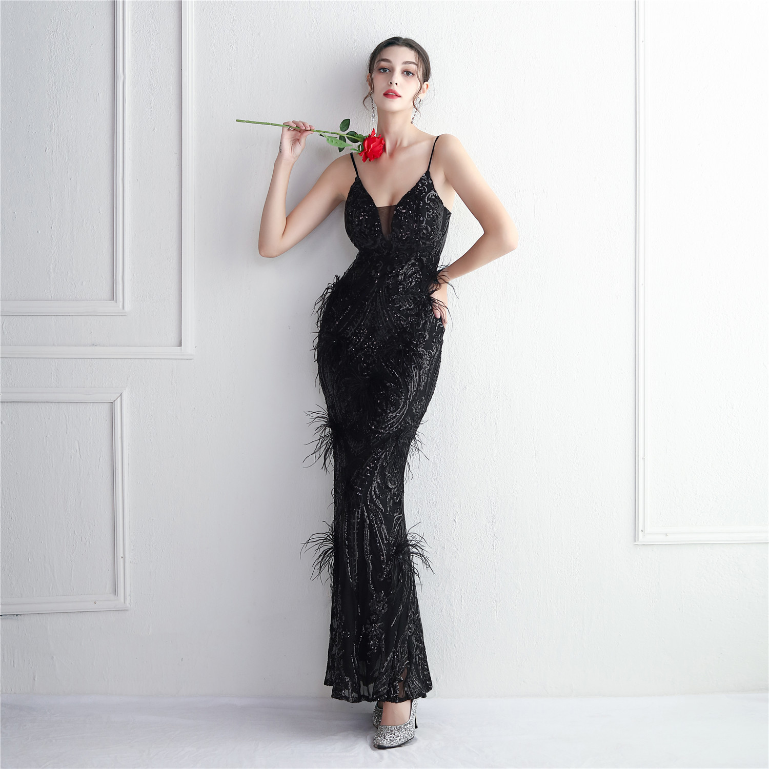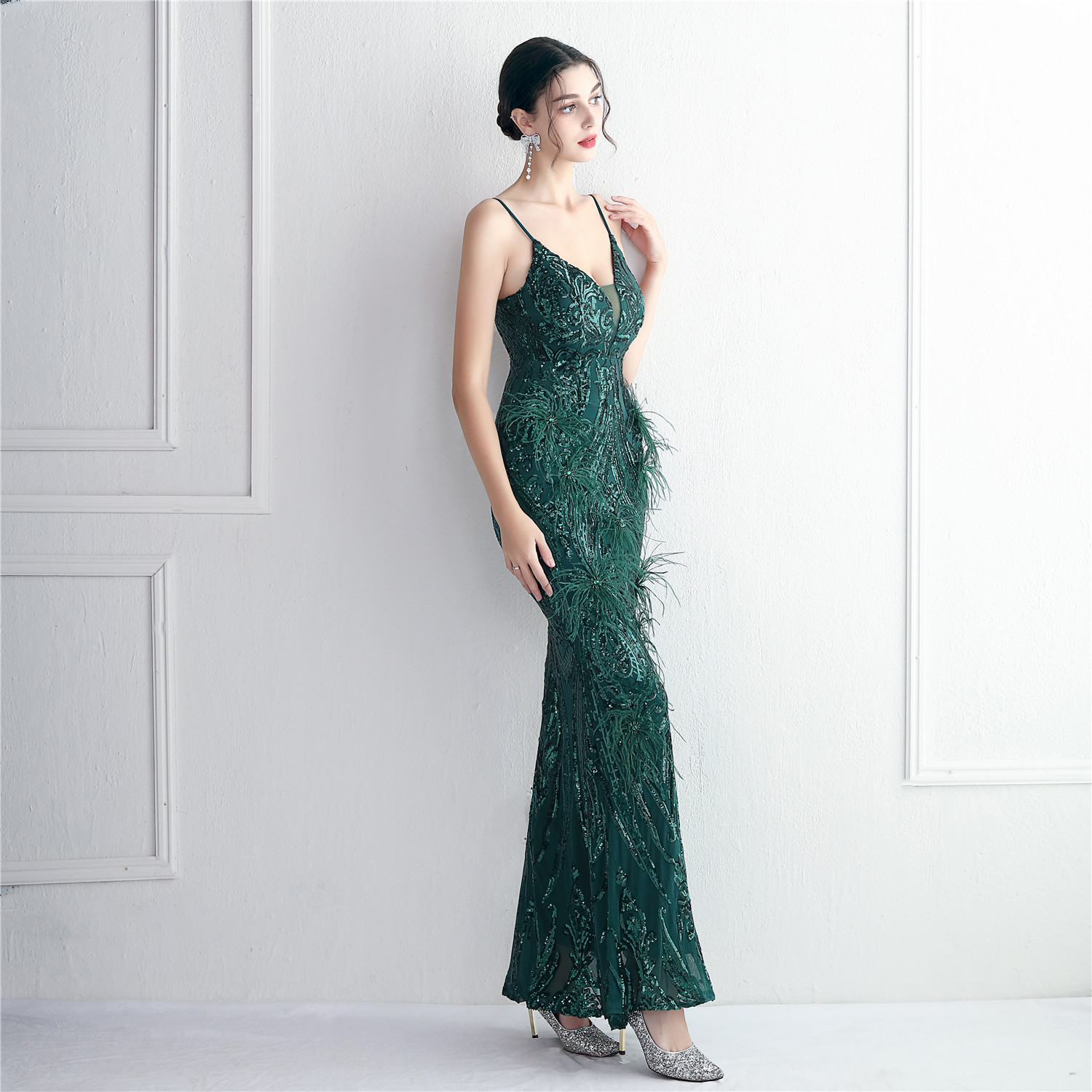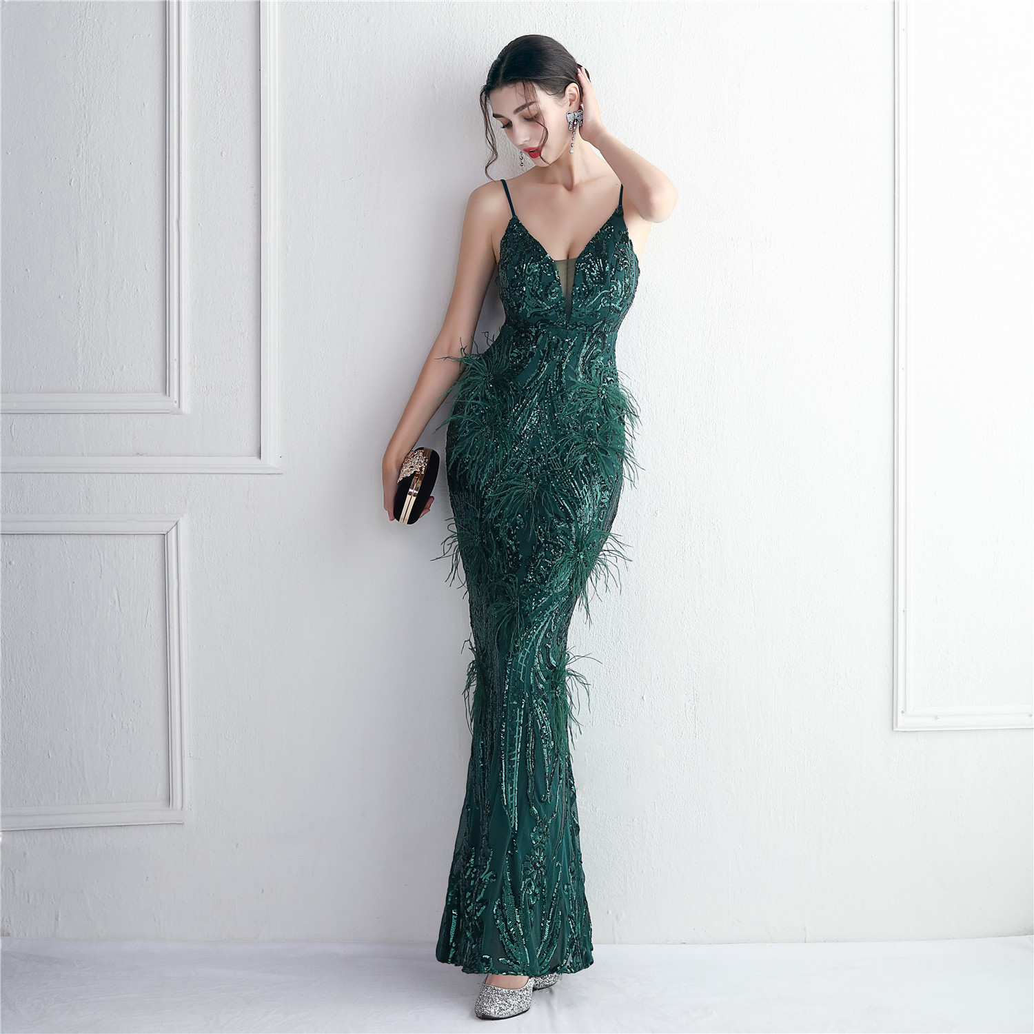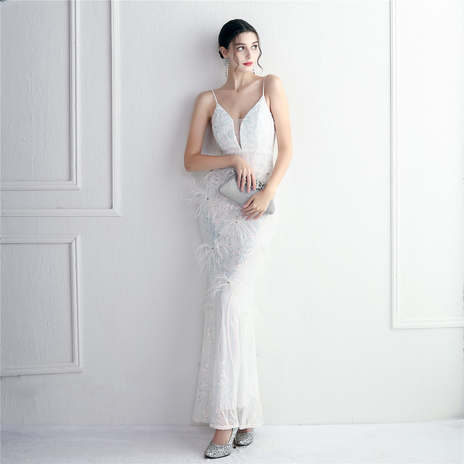 2023年秋季滌絲線流蘇珠片魚尾禮服