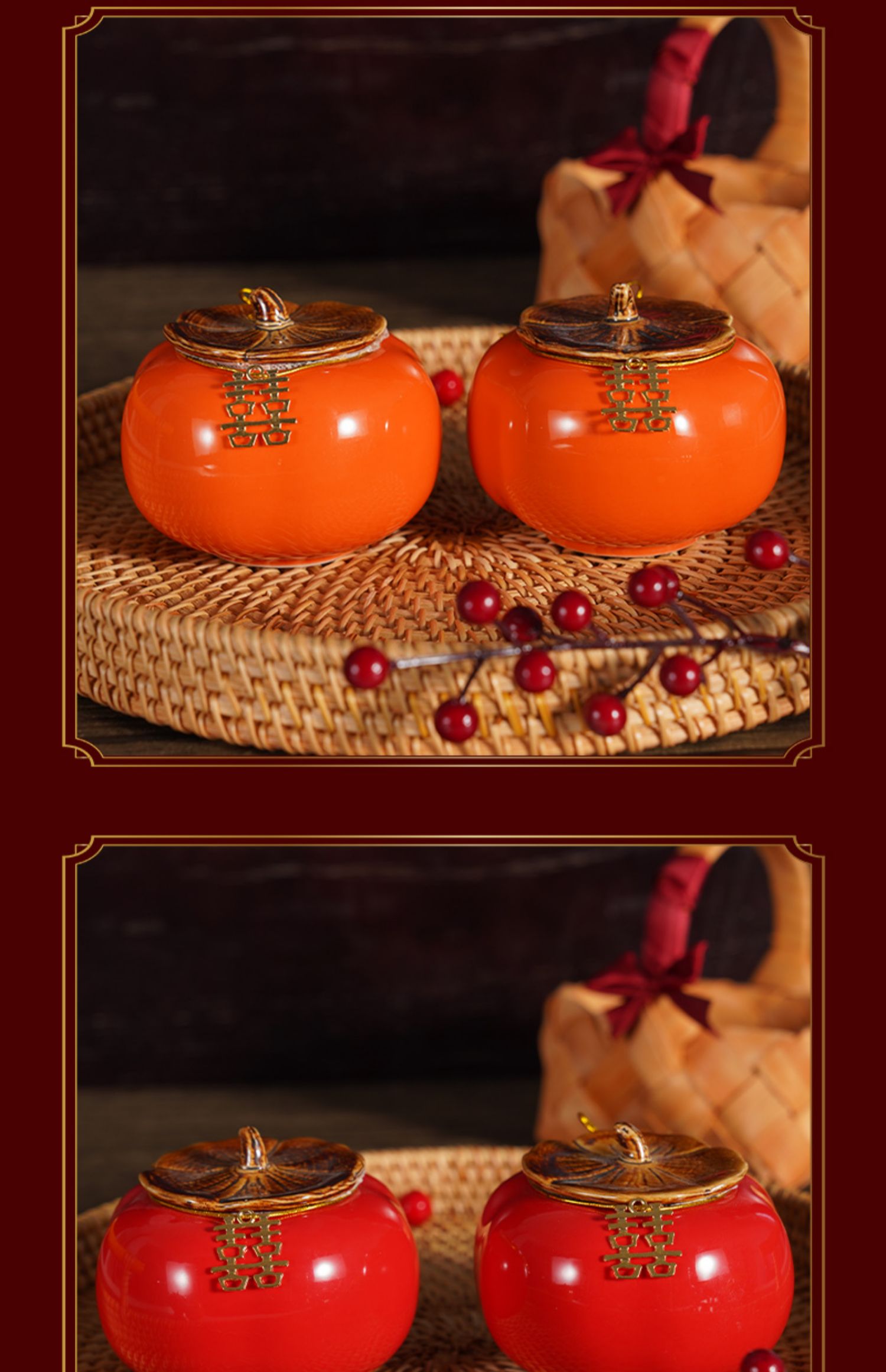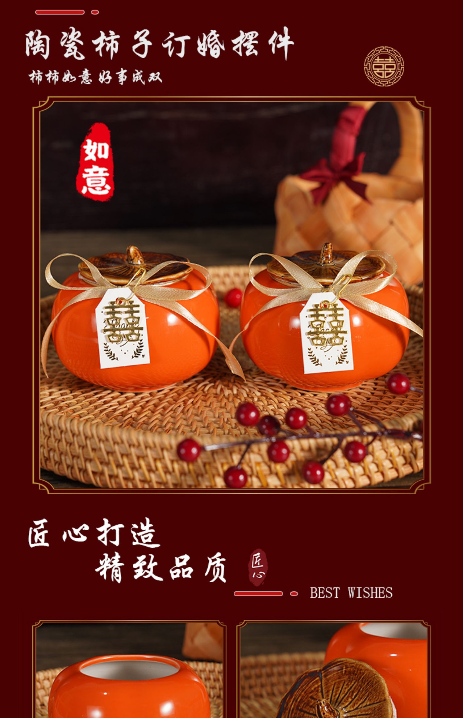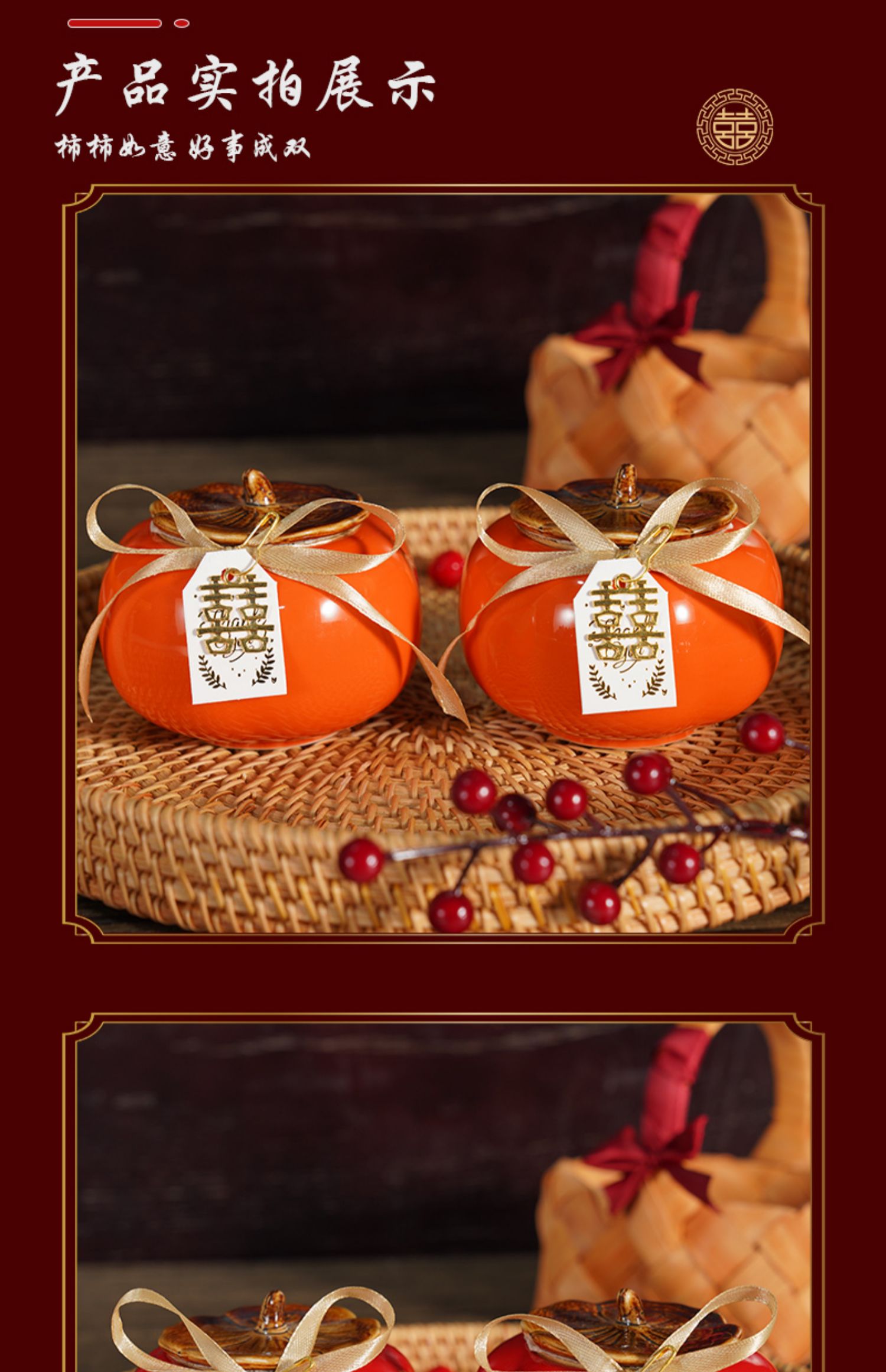 柿柿如意禮品盒柿子擺件茶葉罐喬遷新居裝飾客廳入宅搬家儀式用品