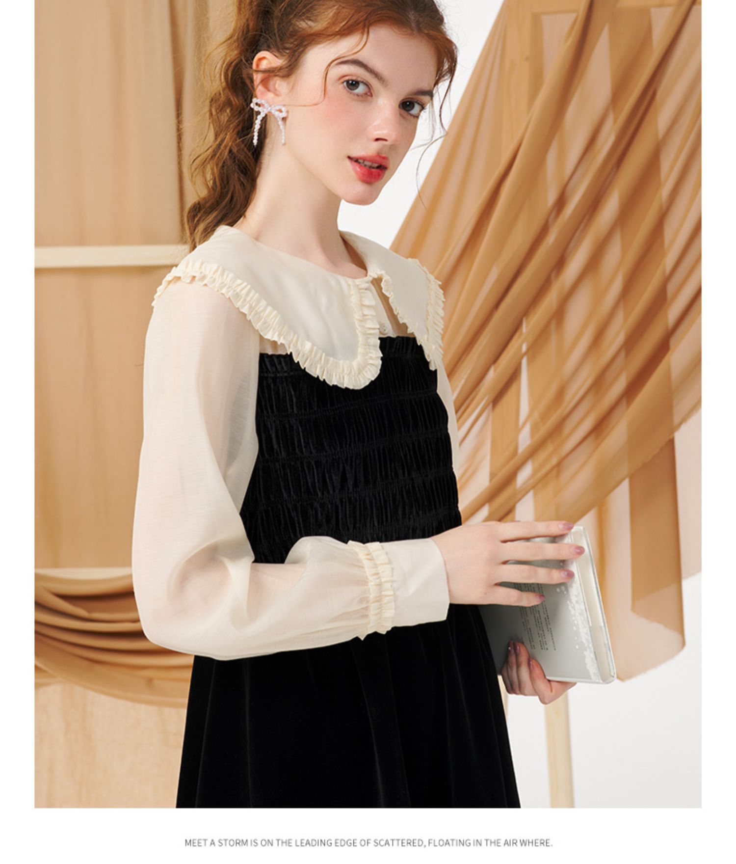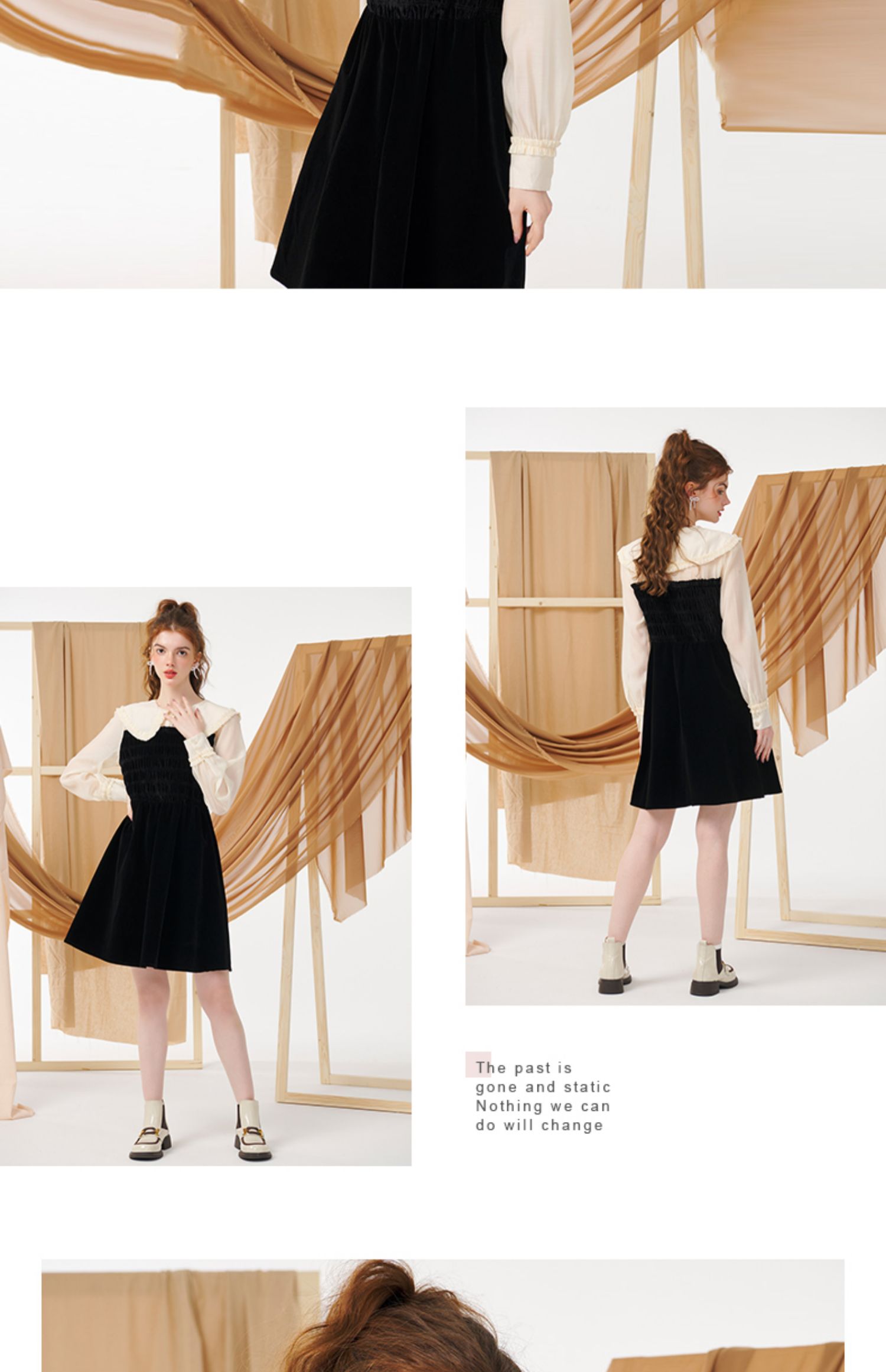 highday軒日2023春秋娃娃領甜美短裙女氣質長袖撞色溫暖風連衣裙