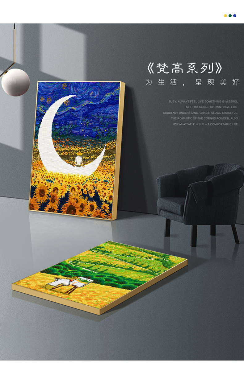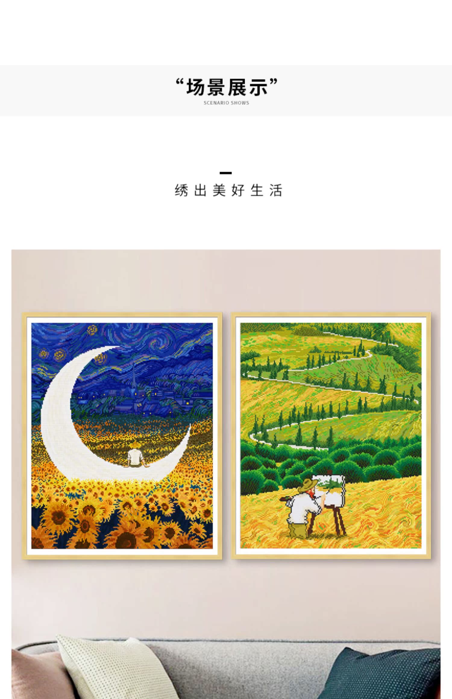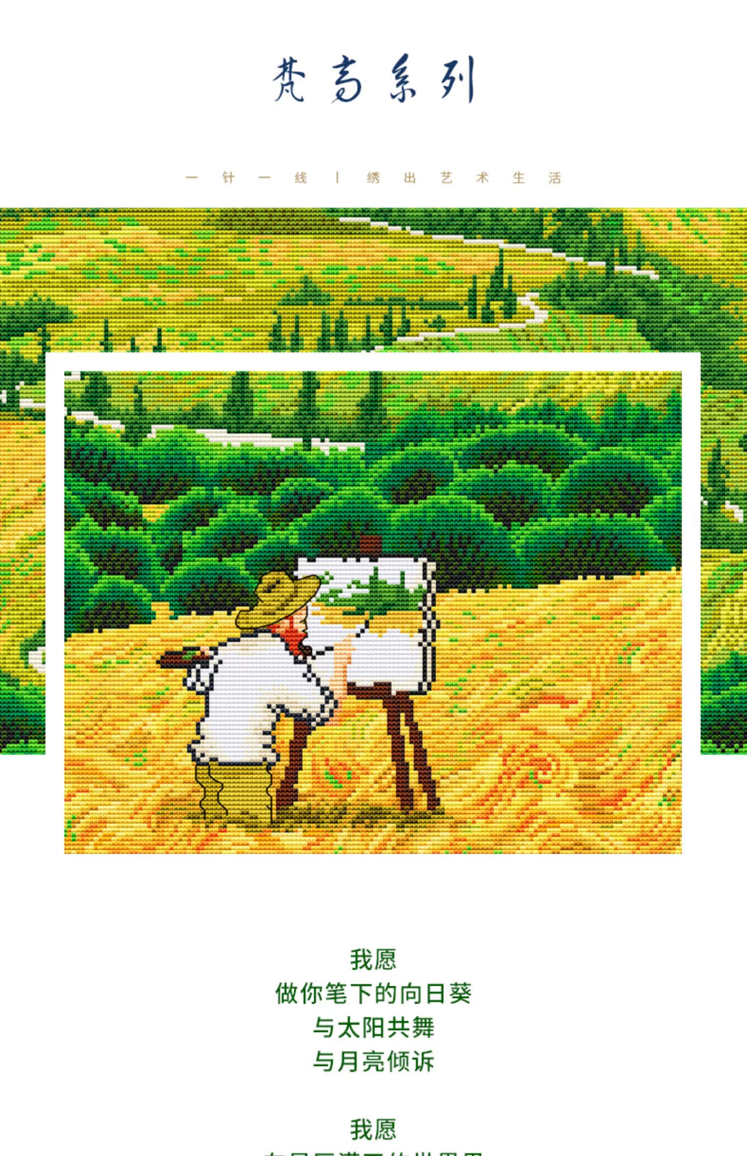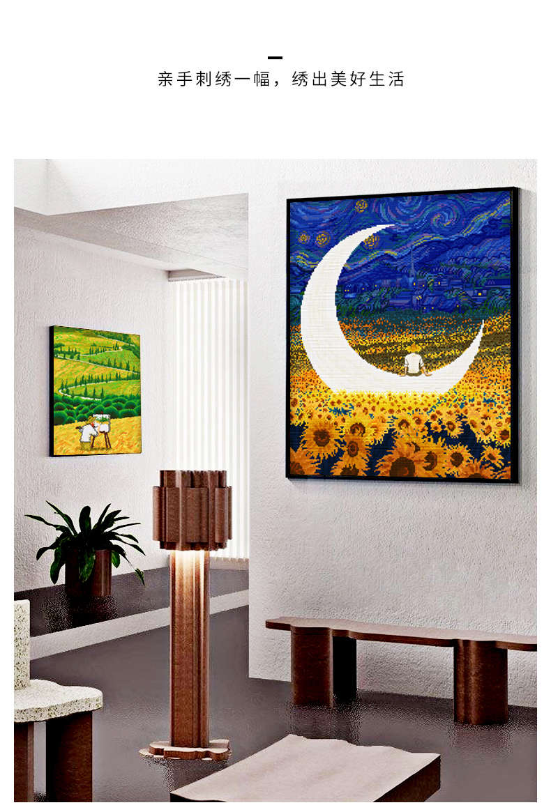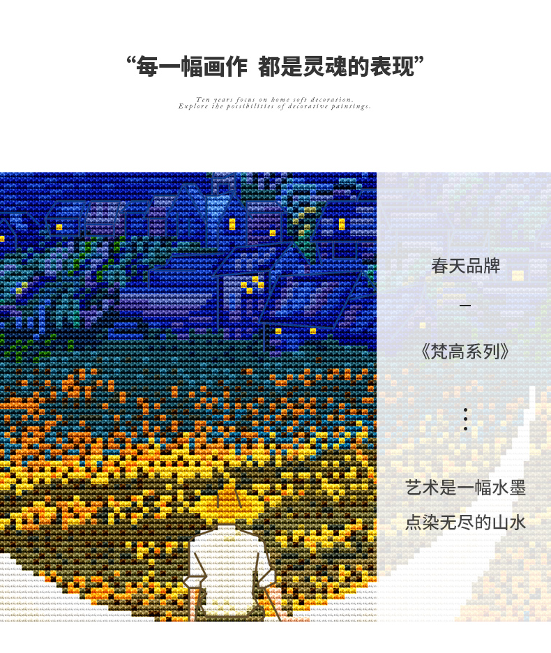 春天十字繡星空下的梵高麥田里油畫風景現代抽象客廳滿繡手工自繡