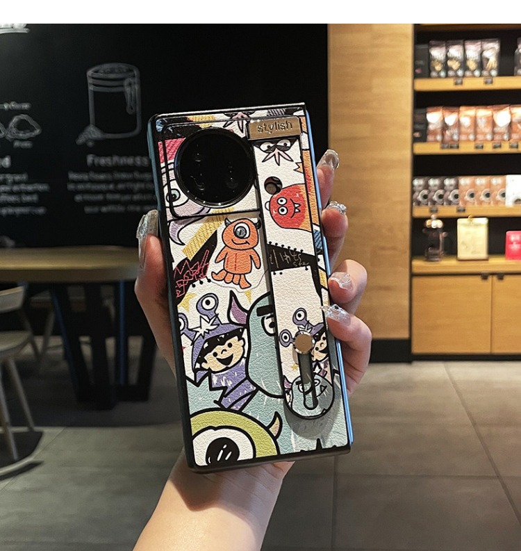 明星同款適用vivoxfold+手機殼新款折疊屏x fold腕帶支架保護殼xfold可愛卡通小動物x fold+超薄皮質防摔外殼