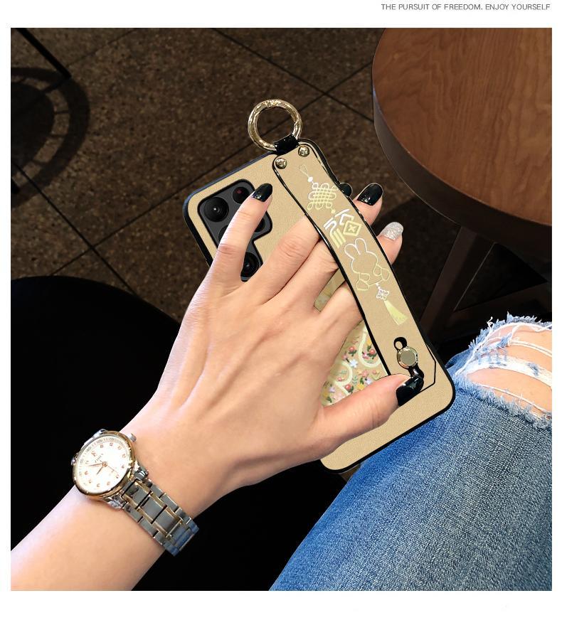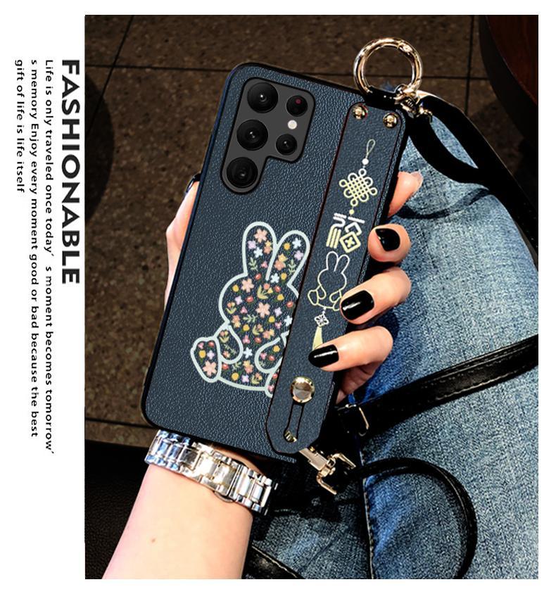 適用三星S23+手機殼S21plus保護套S22Ultra外殼S21FE皮質感S21腕帶款S22碎花兔斜挎掛繩女時尚潮時尚網紅5G