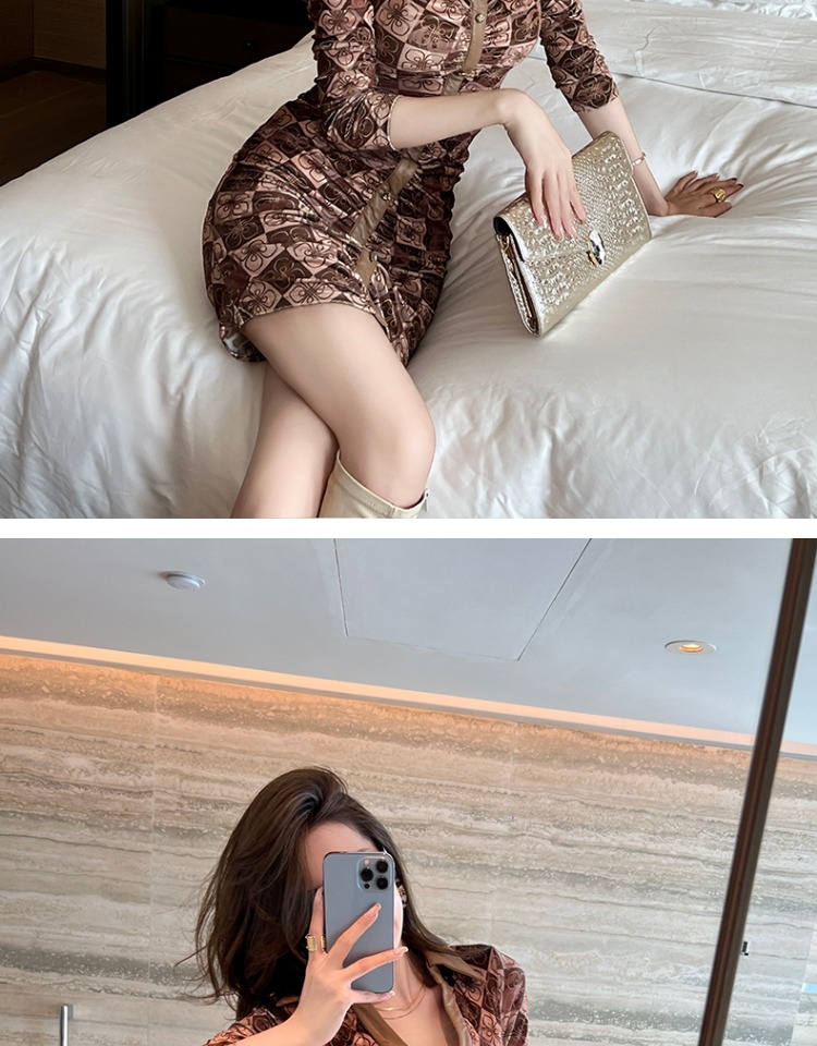 溫柔系穿搭短款豹紋秋季小眾連衣裙