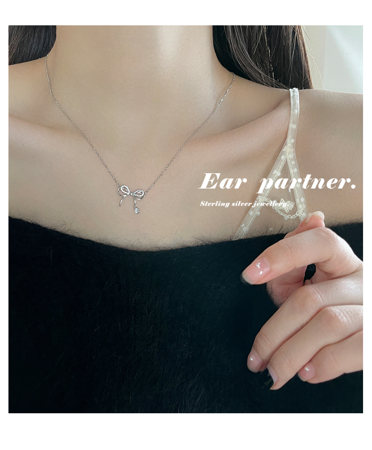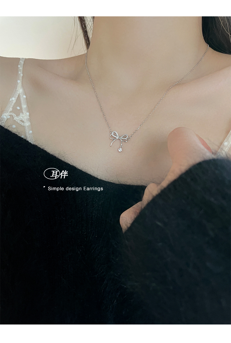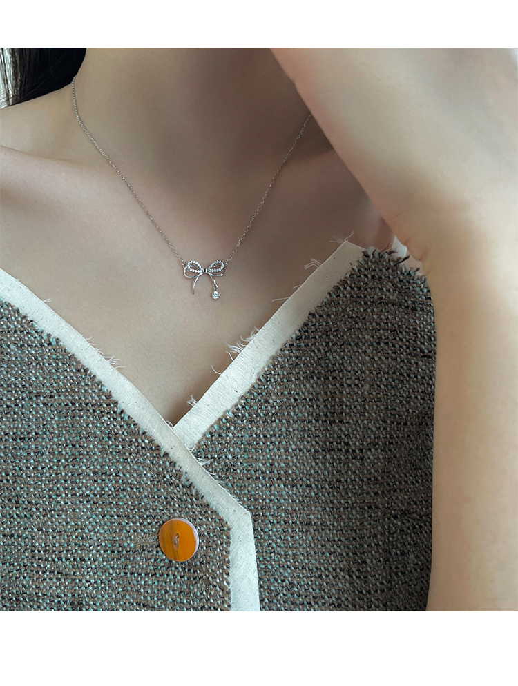 飾悟銀飾蝴蝶結純銀項鏈鎖骨鏈女高級感輕奢小眾項鏈2023新款爆款