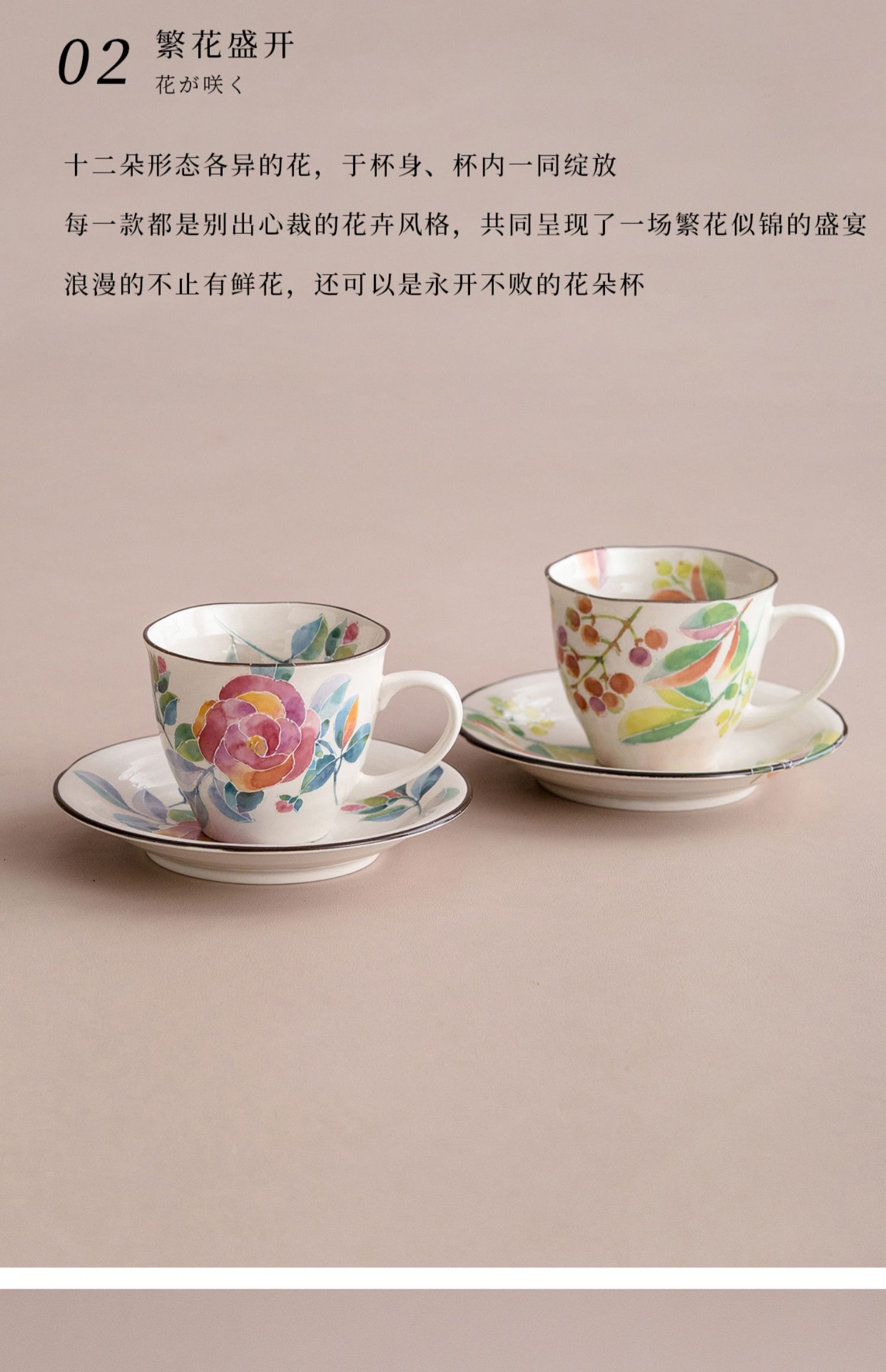 鍋小姐與廚先生日本進口美濃燒卡布奇諾咖啡杯套裝日式下午茶茶杯