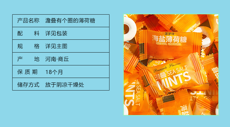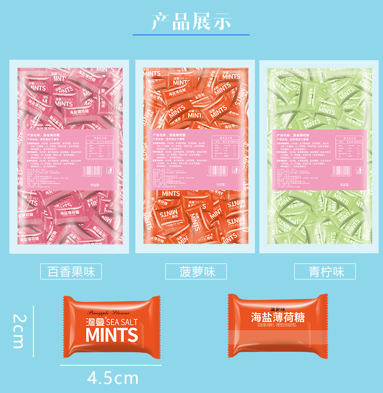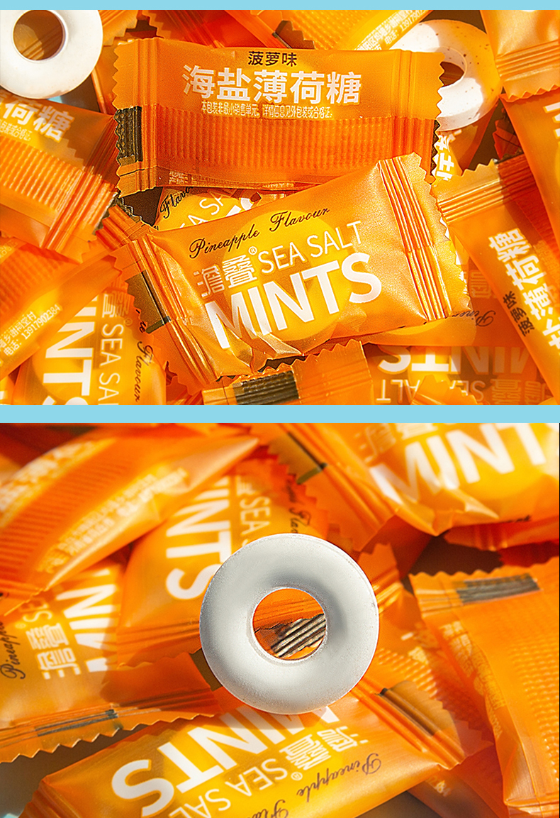 澹疊海鹽菠蘿薄荷糖 250g大約166粒有個圈的菠蘿口味壓片糖果零食