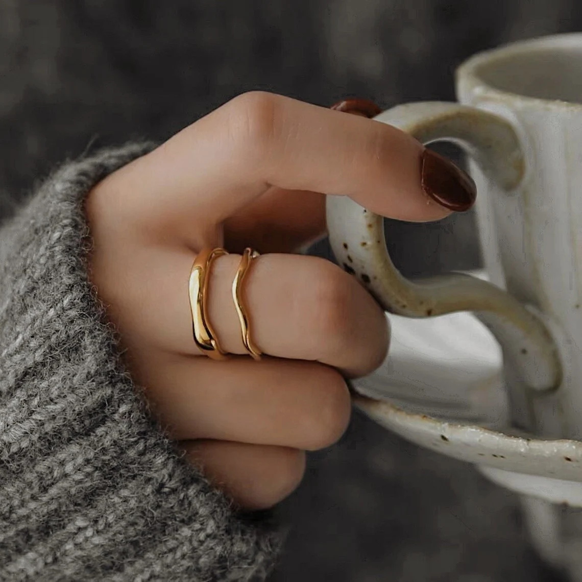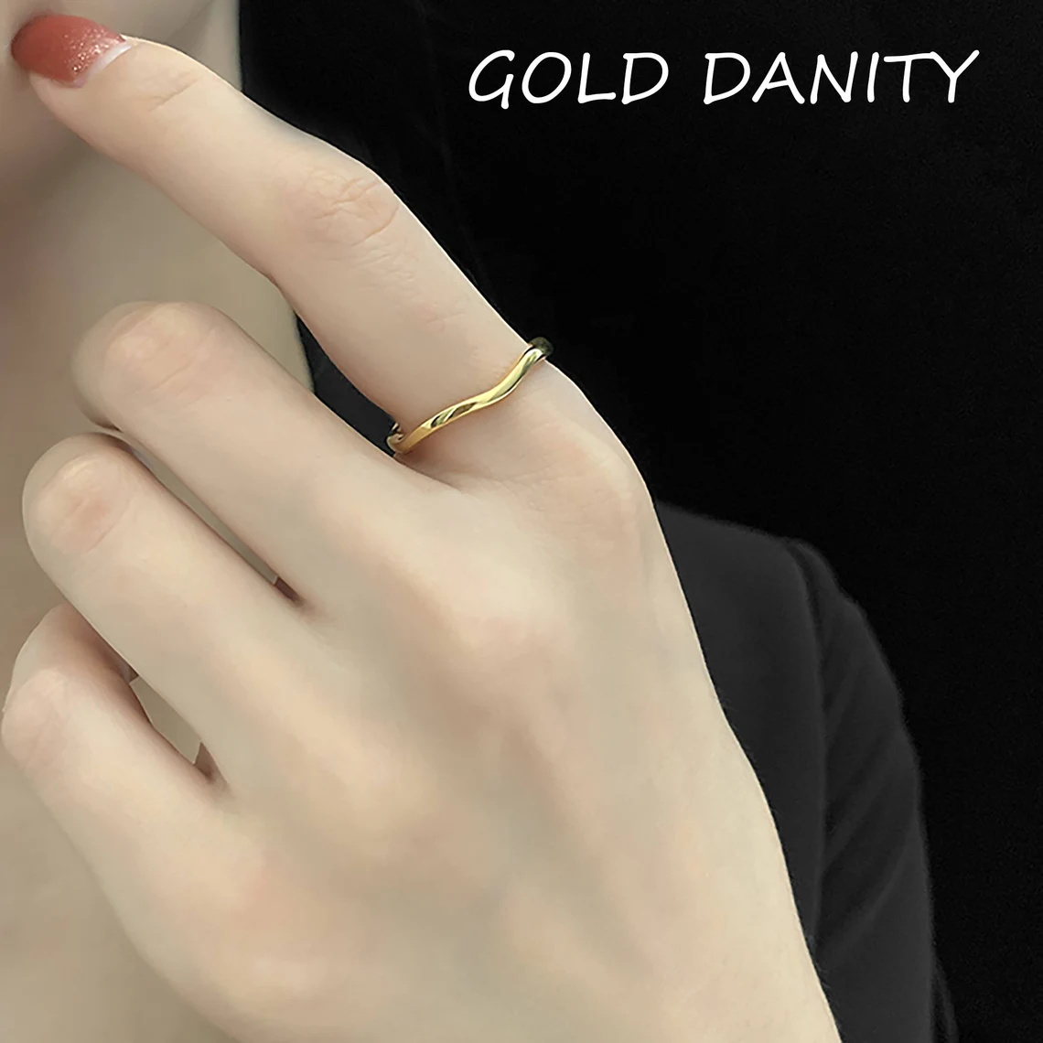 eManco飾品鈦鋼戒指歐美時尚手飾女士不銹鋼個性ins指環鍍18K金色