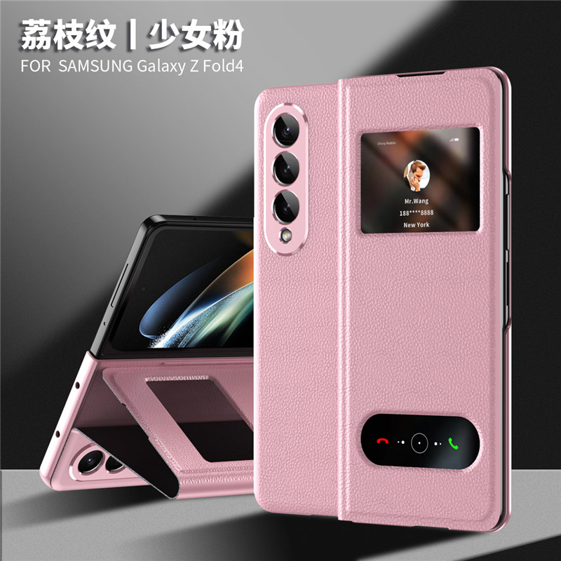 TENNDT適用于三星zfold4手機殼高檔納帕紋磁吸皮套fold3免翻蓋接聽Fold2保護套支架雙開窗心系天下fold5商務
