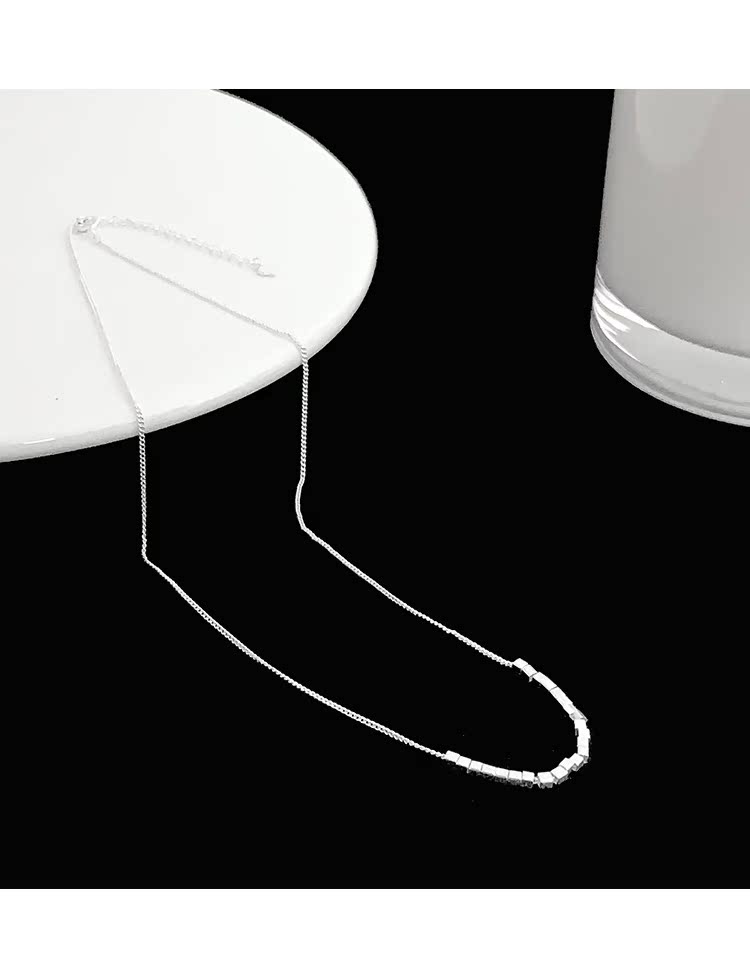 S925銀小方塊項鏈女2023年新款輕奢小眾設計感鎖骨鏈頸鏈簡約配飾