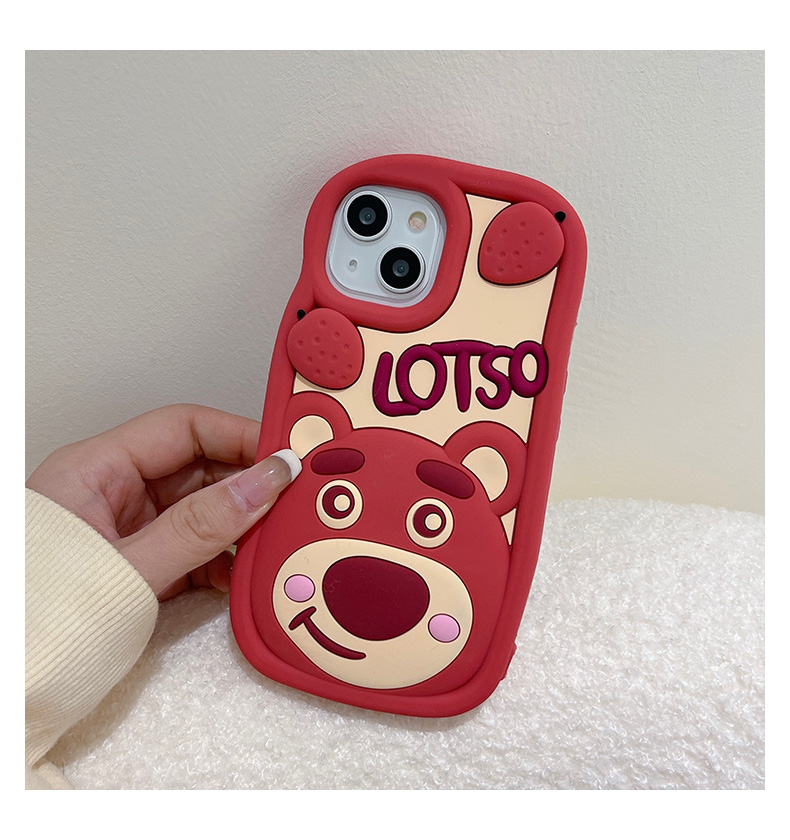 ins韓風卡通可愛草莓小熊立體適用蘋果14手機殼iphone15Promax新款13小眾11簡約plus女12高級硅膠防摔保護套