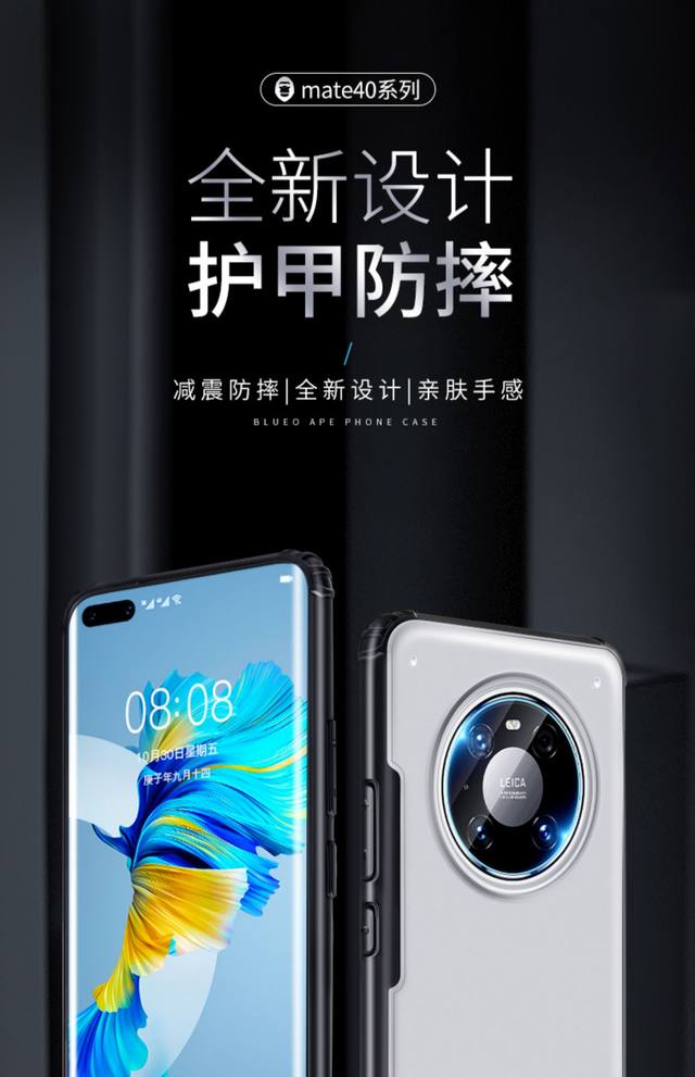 藍猩適用于華為mate40手機殼mate50護甲mate40pro防摔殼全包pro+藍橙大猩猩blueo官方透明后殼保護套磨砂殼