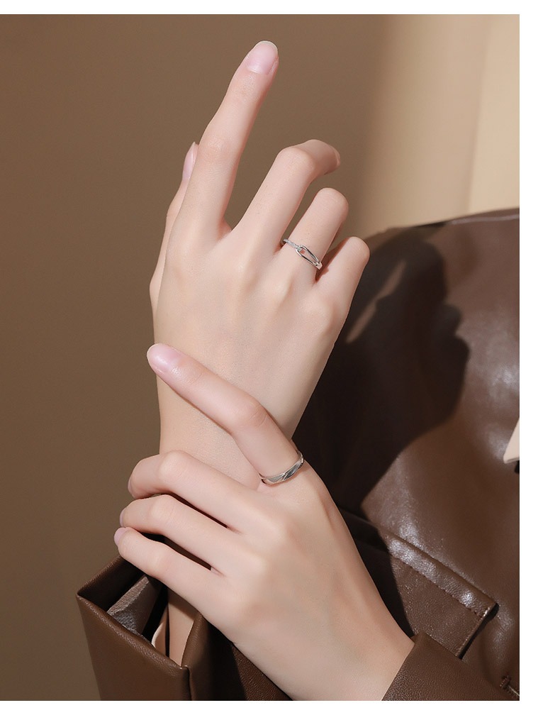 銀色素圈鋯石開口戒指套裝女指環