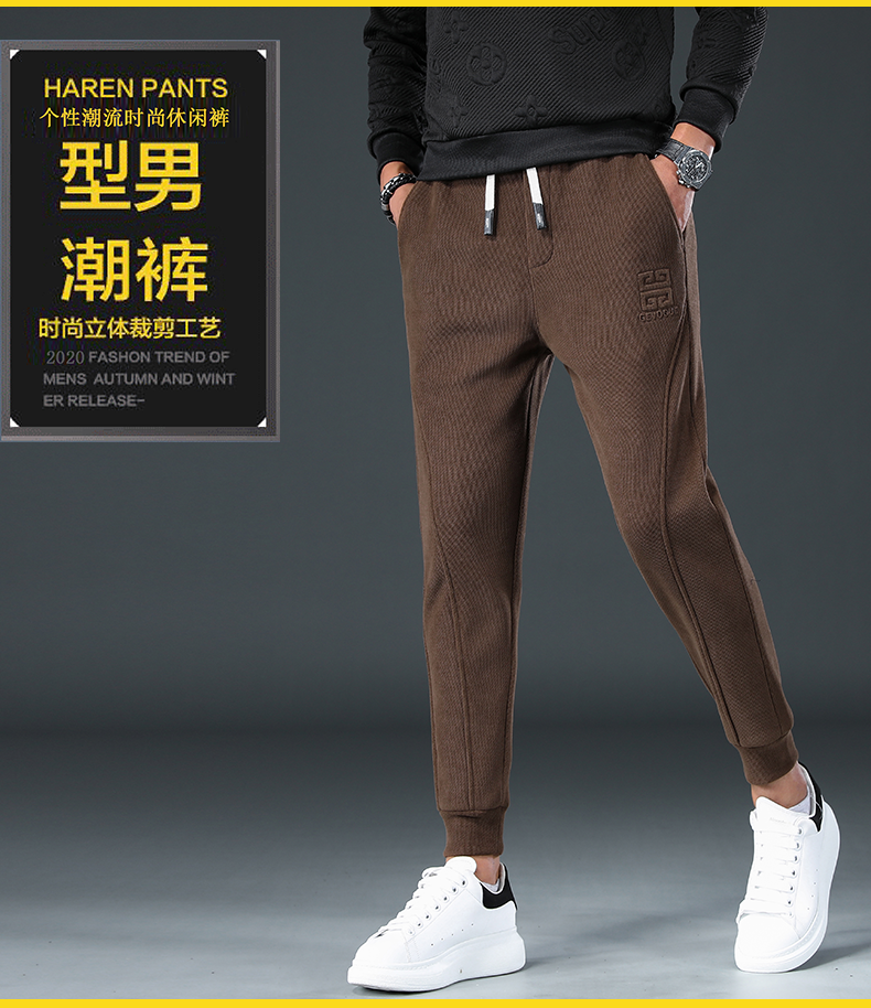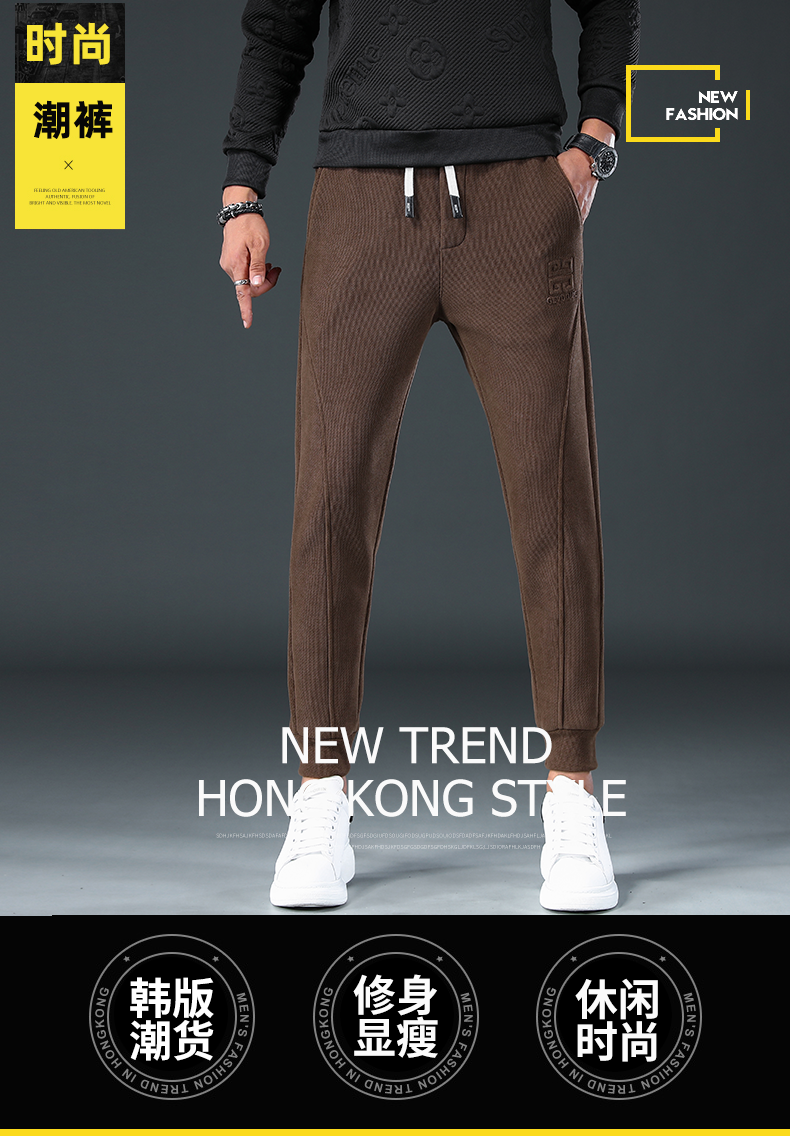 歐貨潮牌秋季男士褲子潮流百搭高端咖色休閑褲男束腳衛褲運動長褲