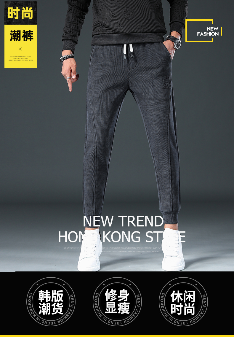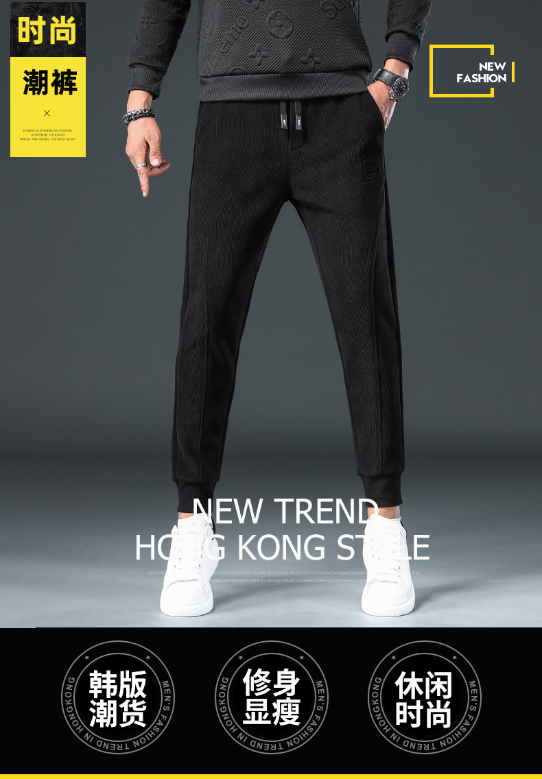 秋冬季新款燈芯絨男潮流修身休閑褲