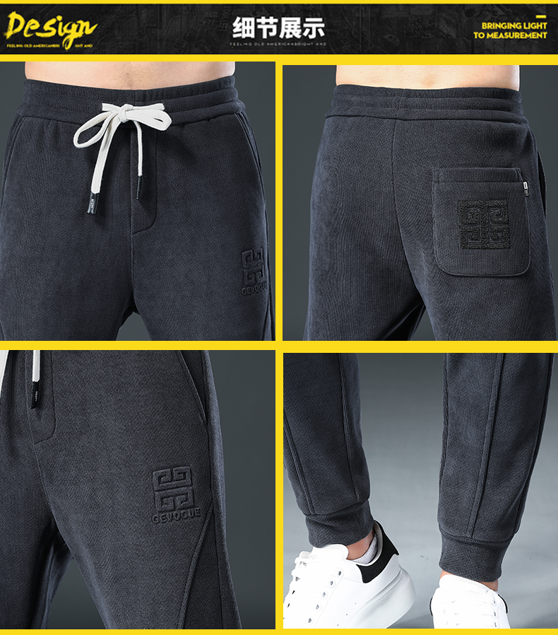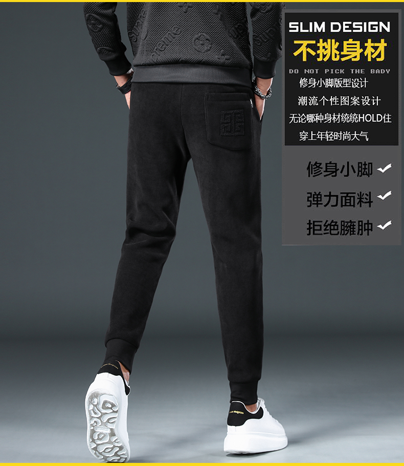 男士衛褲春秋冬季潮牌韓版新款加絨休閑褲男裝大碼寬松運動束腳長
