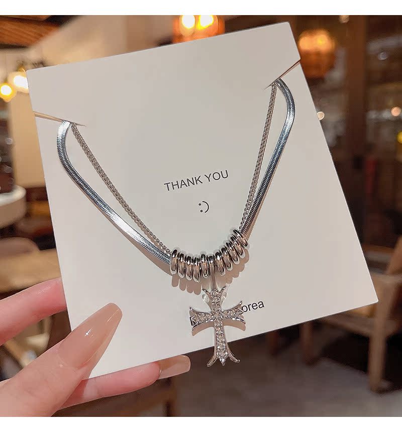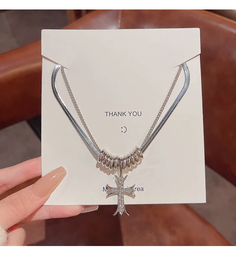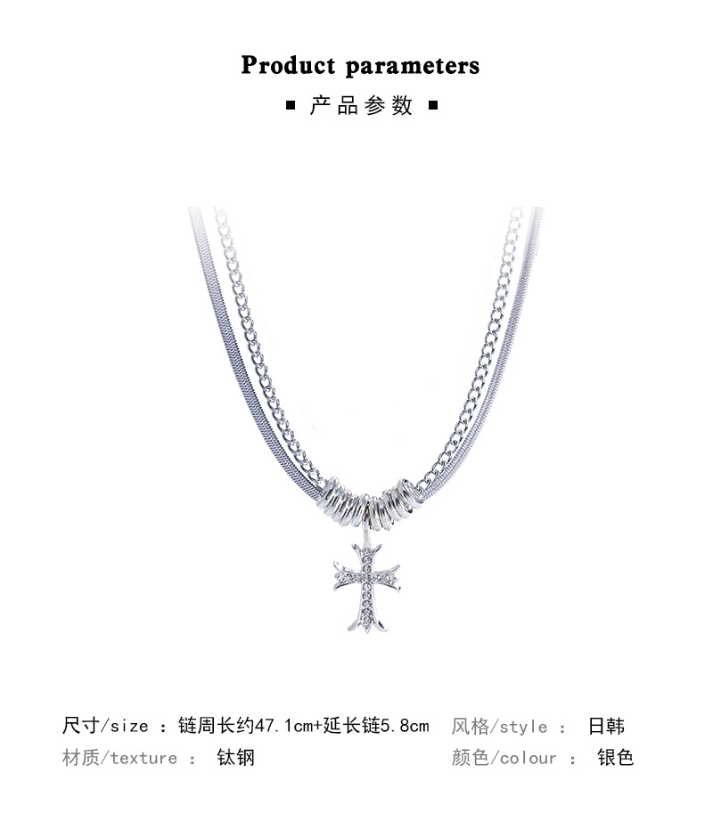 潮酷十字架吊墜鈦鋼項鏈女ins嘻哈風輕奢小眾雙層疊戴毛衣鏈配飾