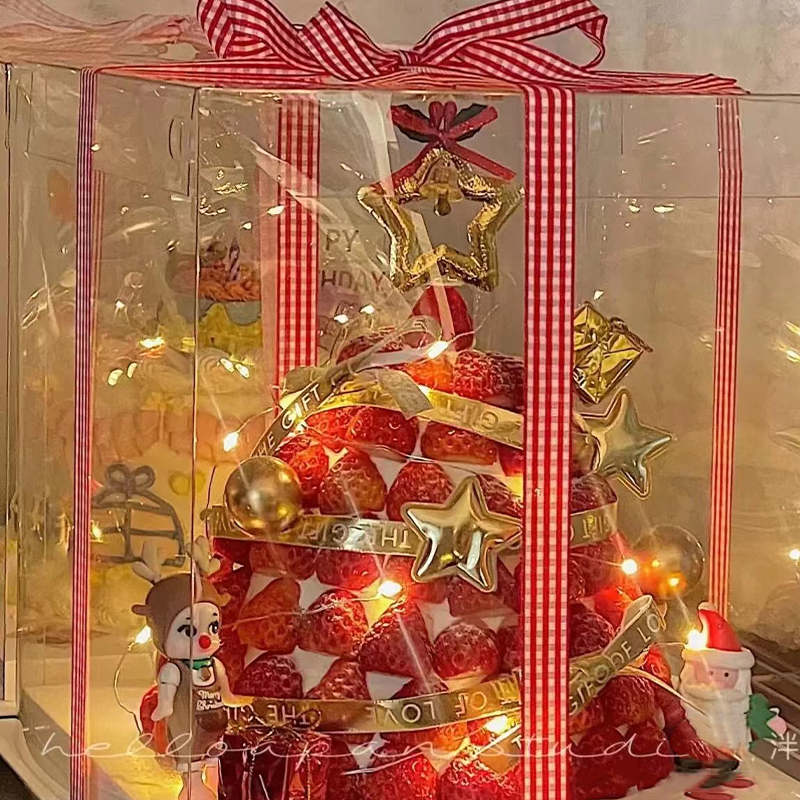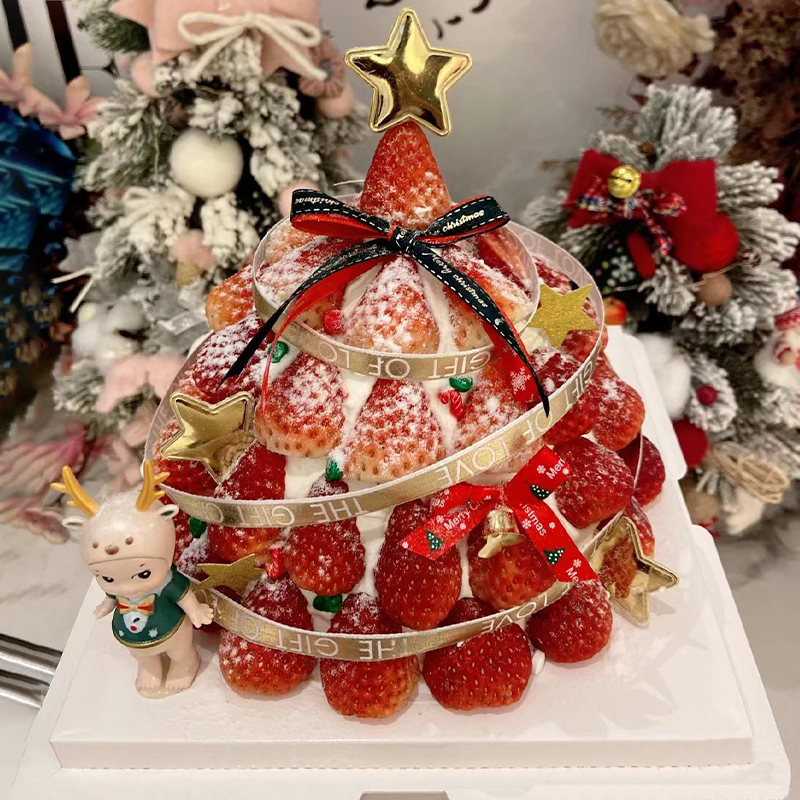 圣誕節草莓塔蛋糕裝飾絲帶圣誕麋鹿天使星星蛋糕插件甜品臺裝扮