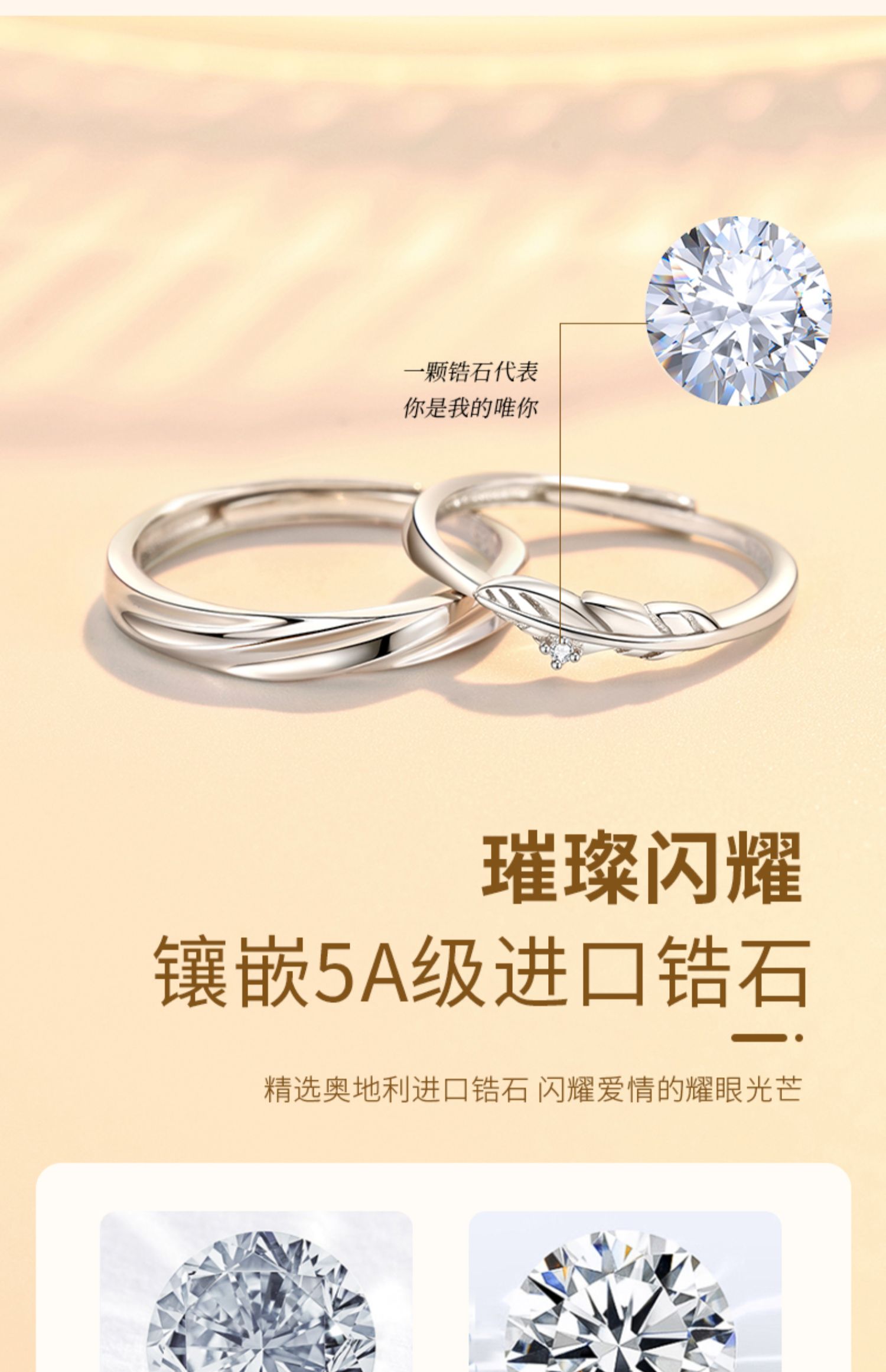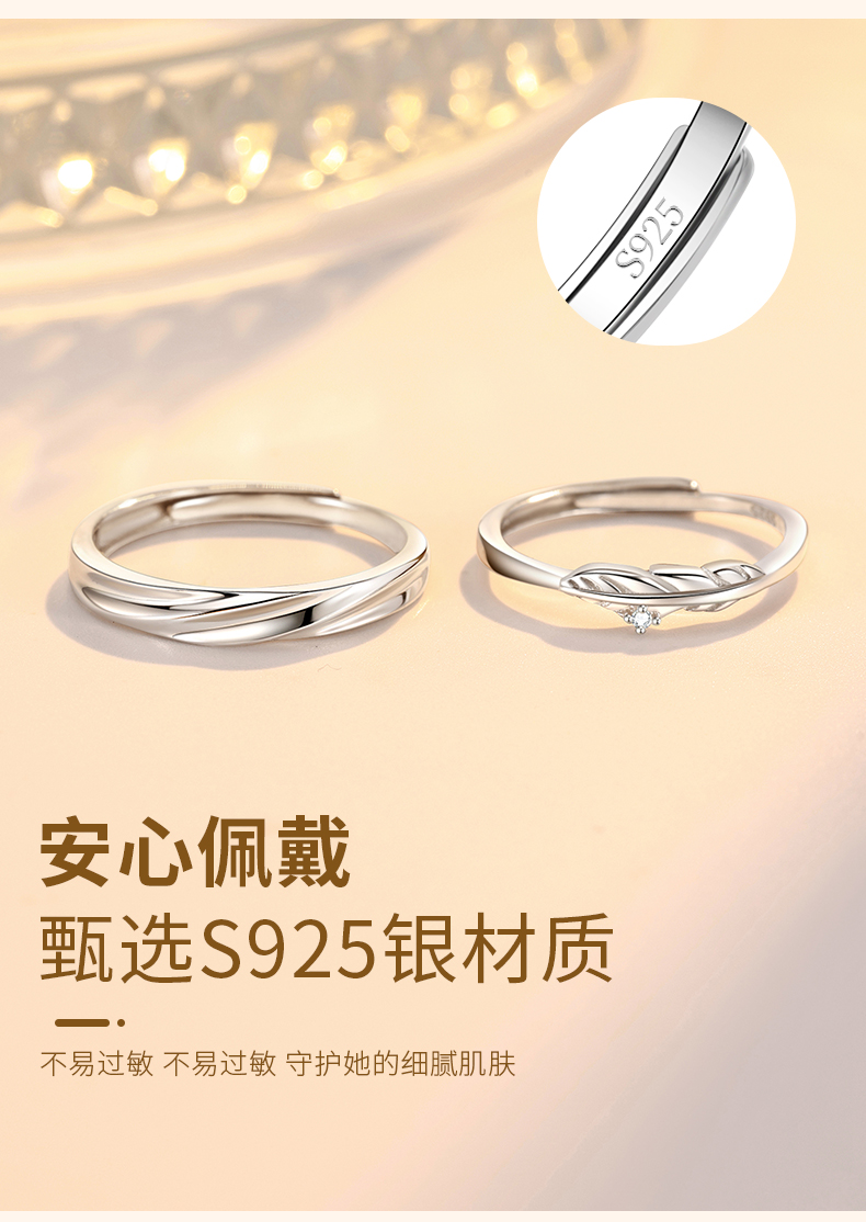 情侶對戒純銀戒指女小眾設計一對款原創開口指環生日禮物送男女友