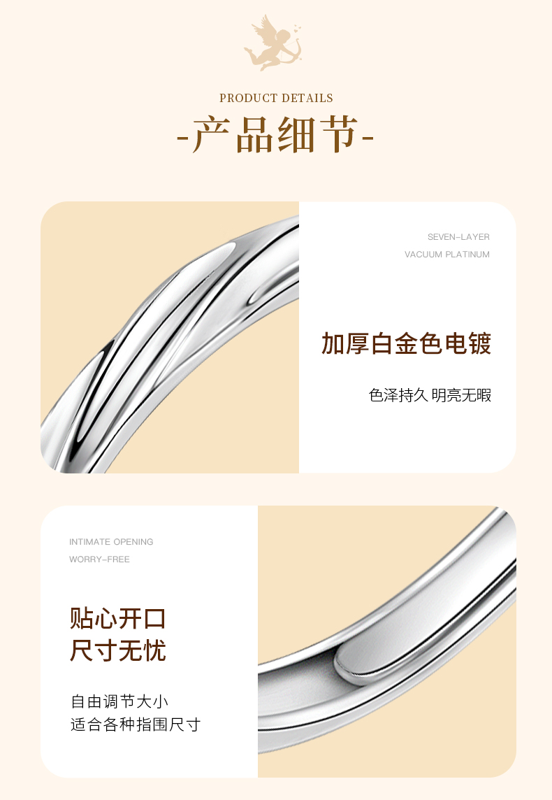 情侶對戒999純銀戒指女小眾設計一對款開口指環生日禮物送女友