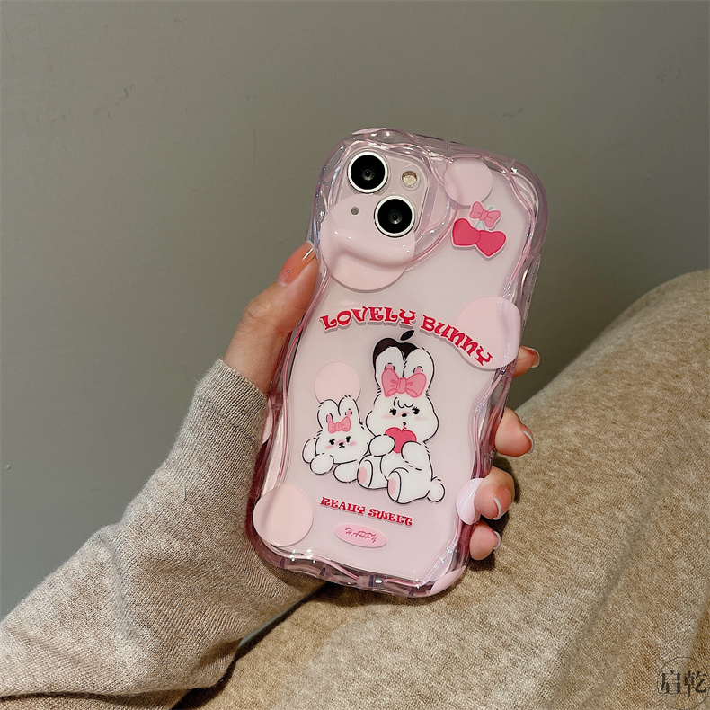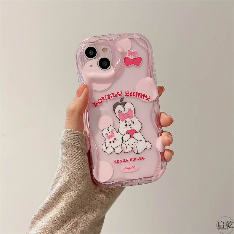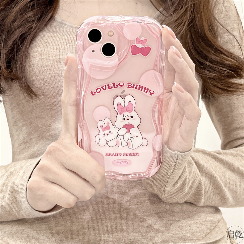 粉色可愛兔子iphone14手機殼適用蘋果13promax透明軟殼12/11小眾卡通14plus少女心新款硅膠鏡頭全包防摔啟乾