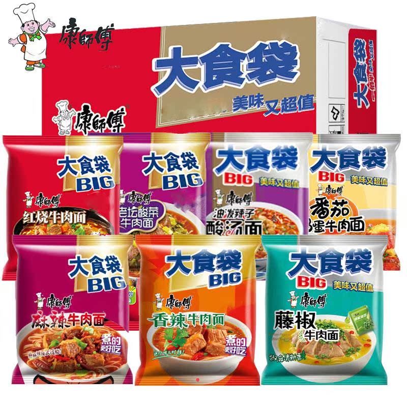 康師傅方便面整箱大食袋泡面袋裝紅燒牛肉混搭速食官網旗艦店