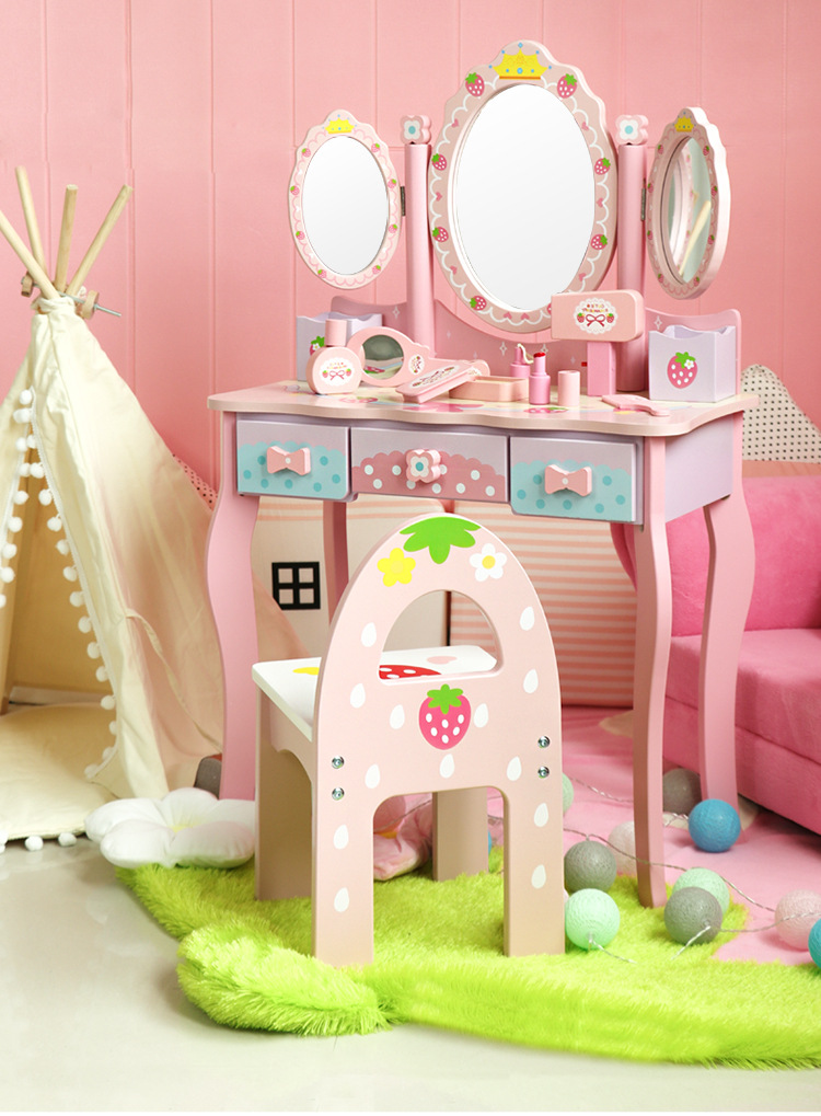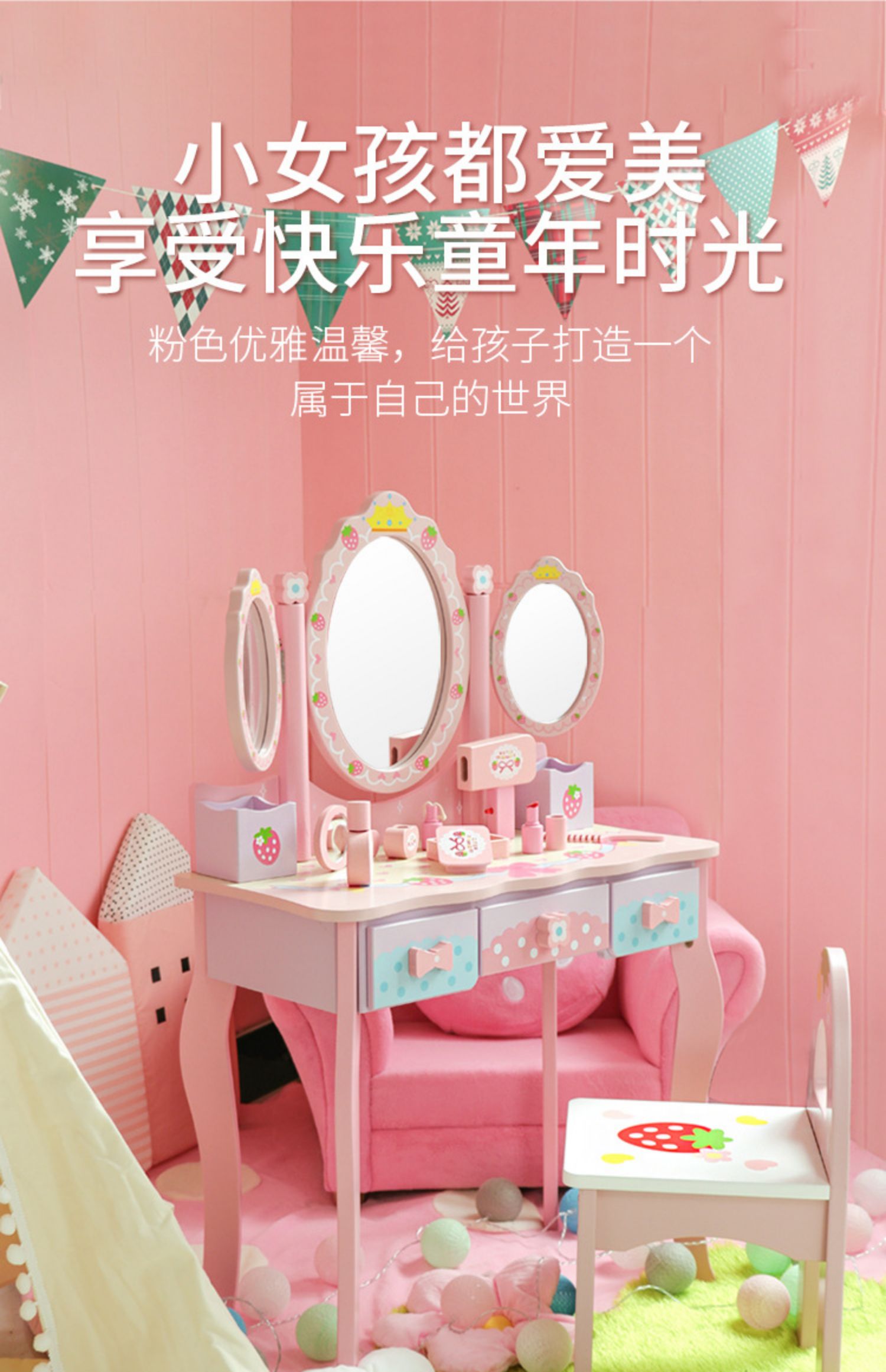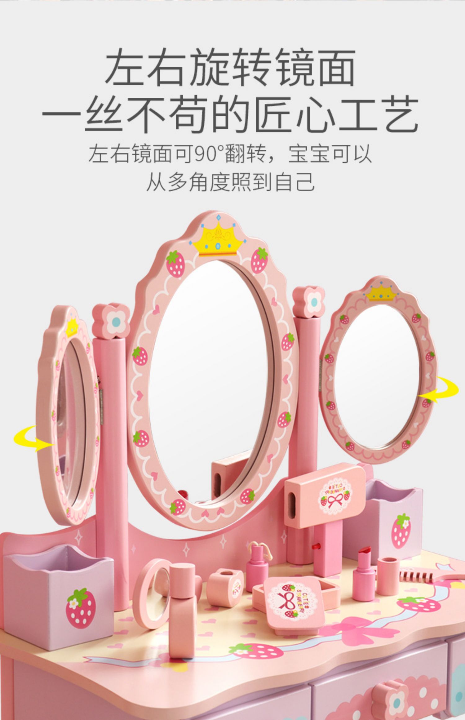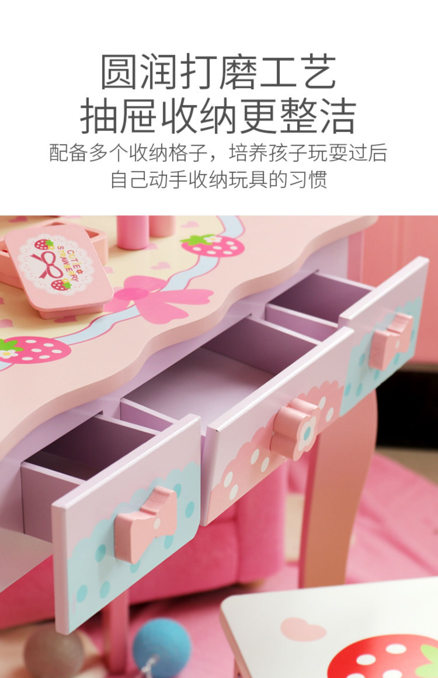 木制大號仿真草莓公主粉色梳妝臺兒童寶寶化妝套裝女孩禮物玩具