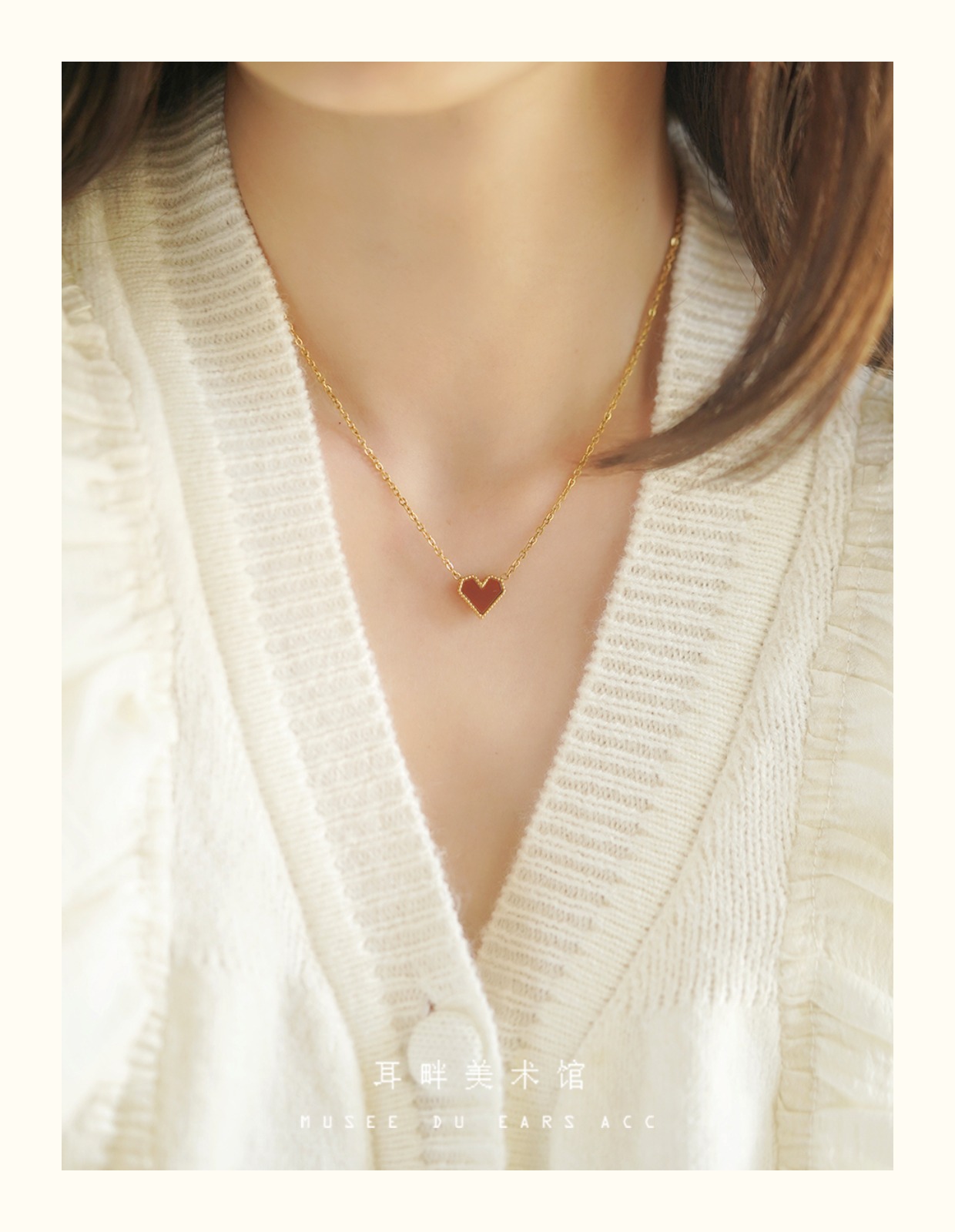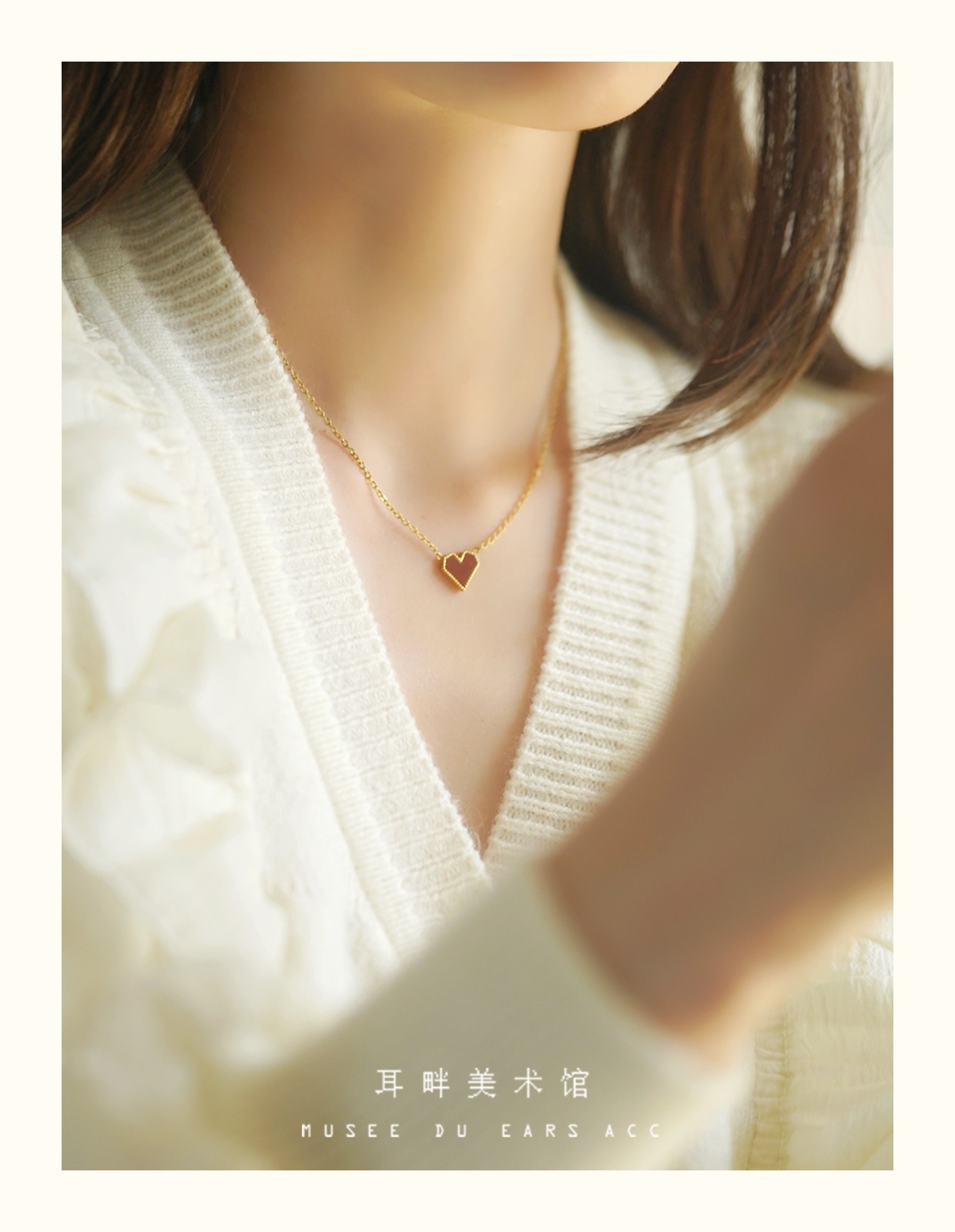 B紅色愛心鈦鋼項鏈顯白項鏈輕奢小眾女2022年新款高級設計感小眾