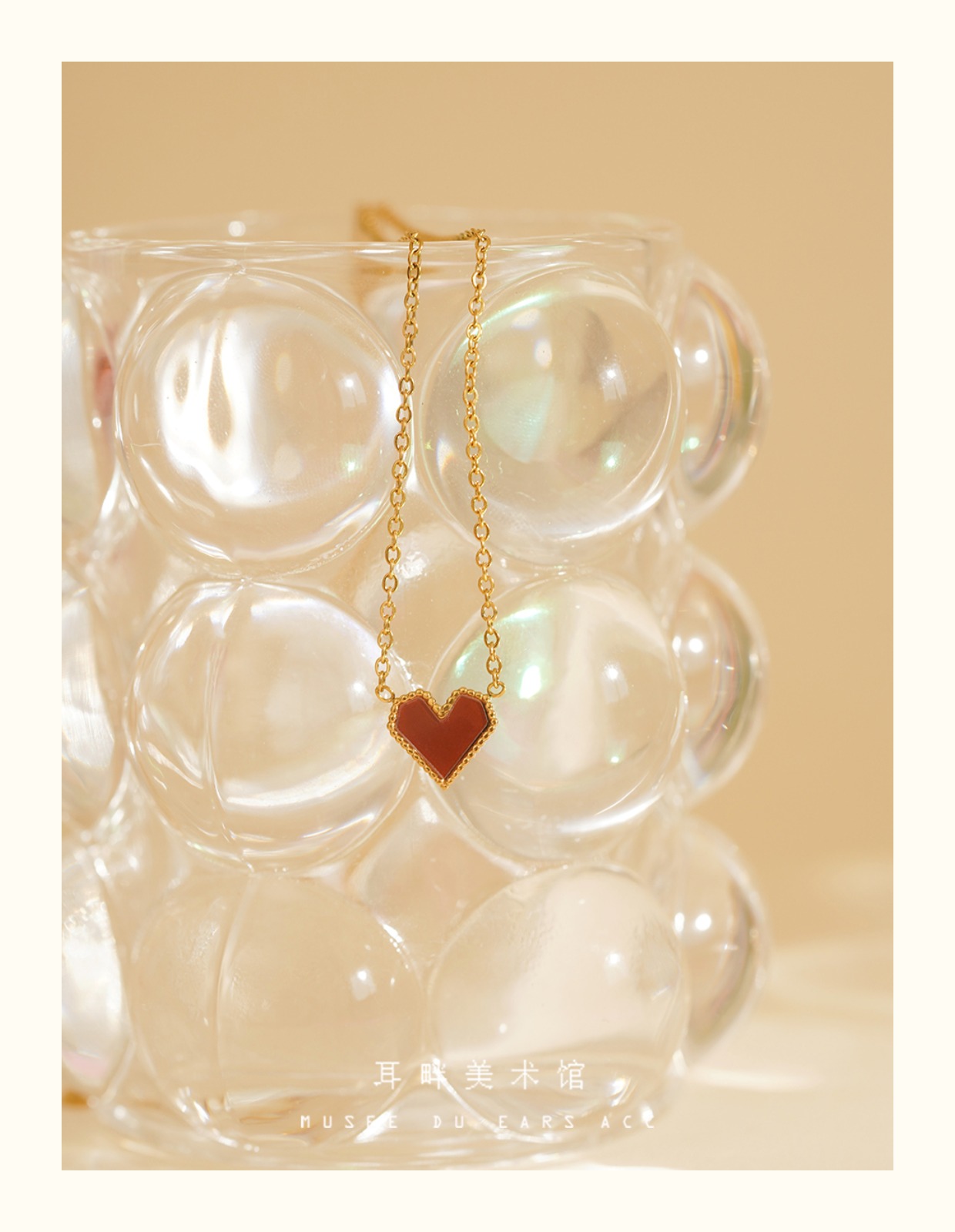 b天然母貝愛心復古鈦鋼法式感項鏈