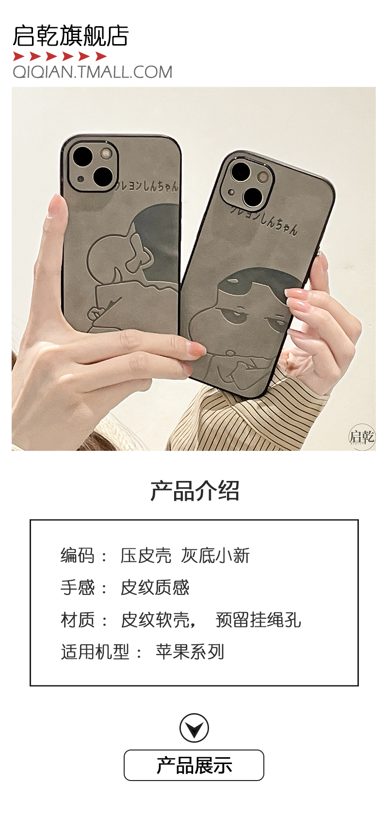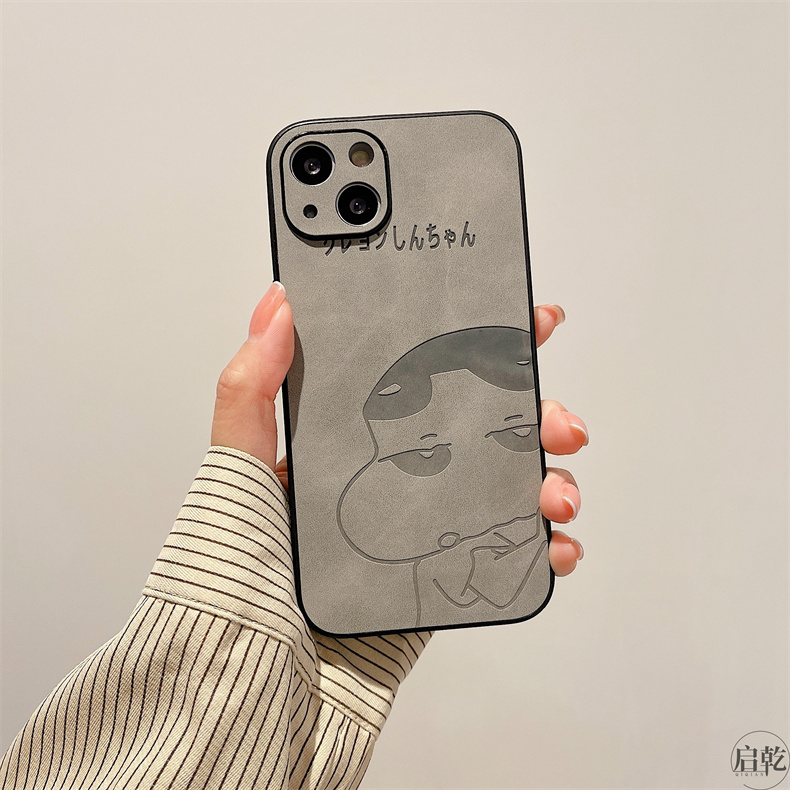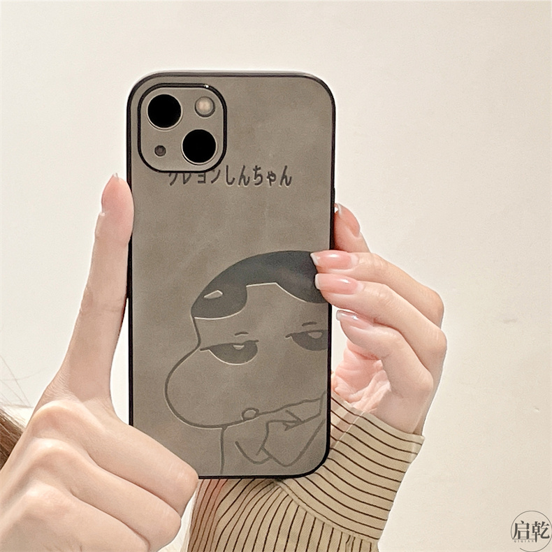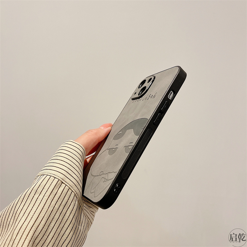 灰色皮紋小新iphone14手機殼適用蘋果13promax趣味卡通12/11可愛動漫14plus情侶男女硅膠鏡頭全包防摔啟乾